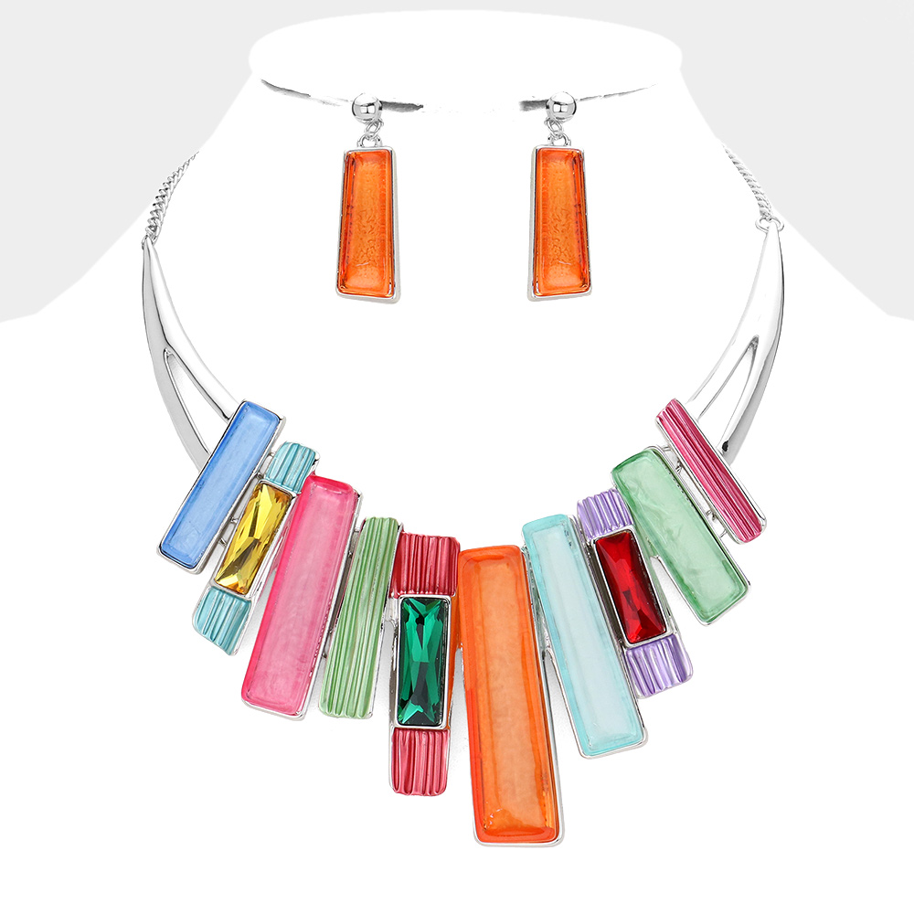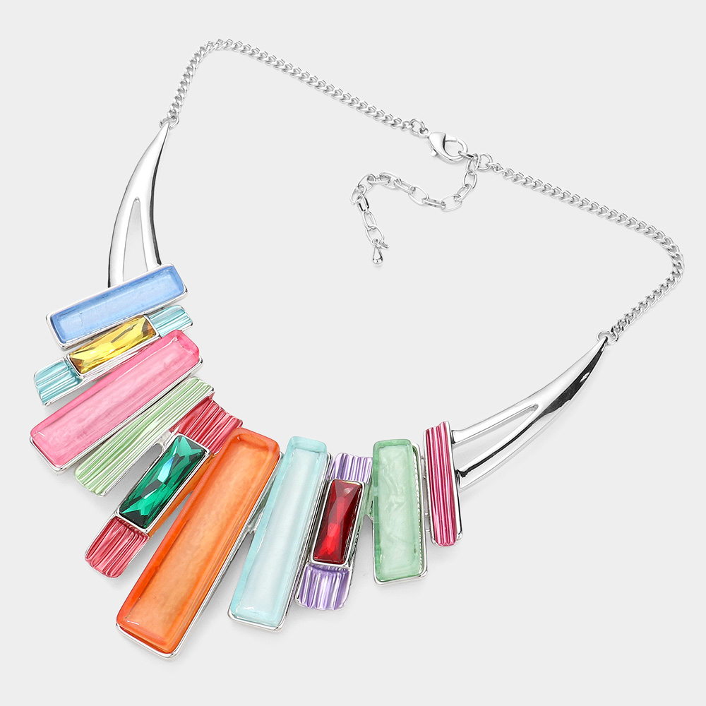 Natural Round Stone Pointed Brushed Metal Stretch Bracelet