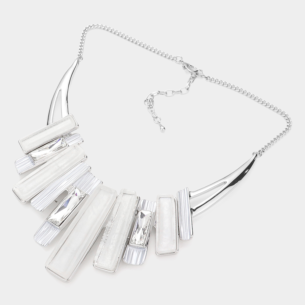 Rectangle Stone Pointed Colored Metal Necklace