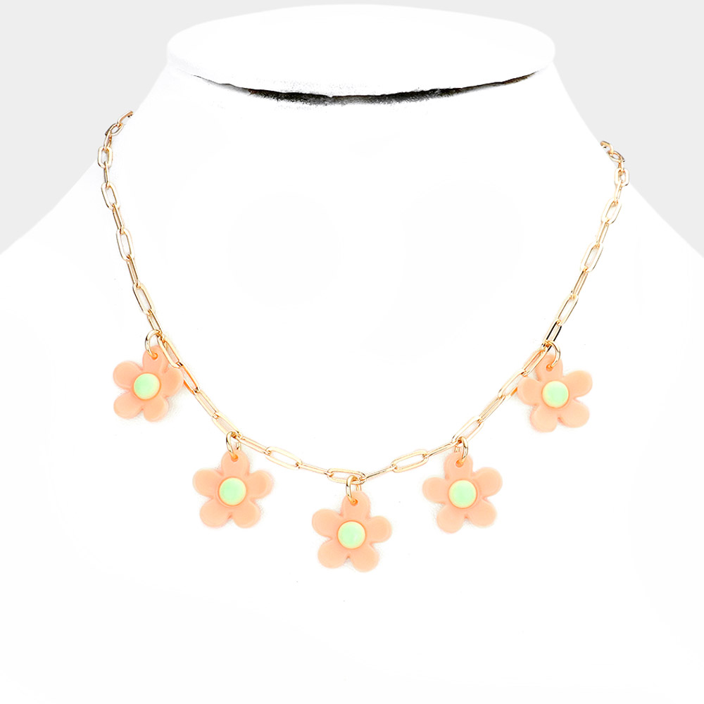 Beaded Flower Teardrop Stone Link Dangle Earrings