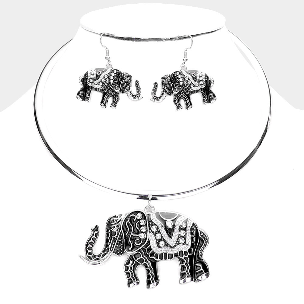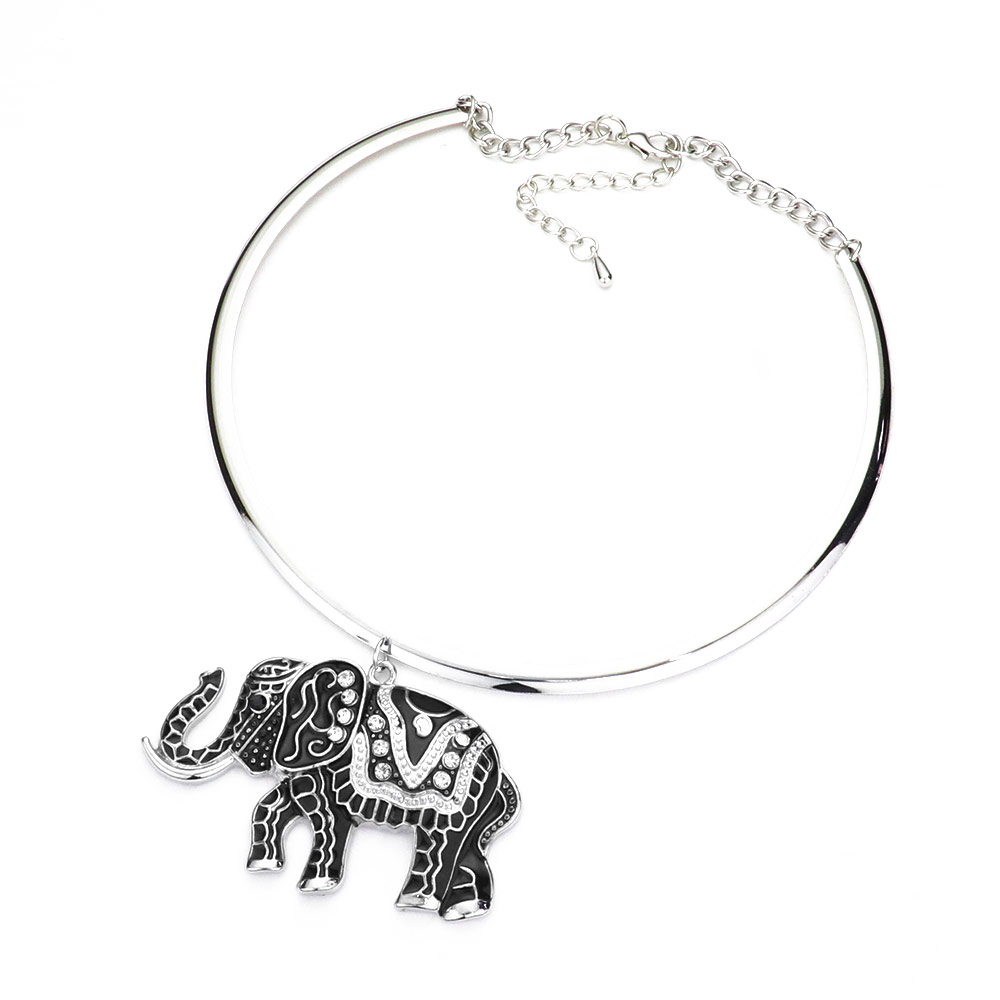 Rhinestone Embellished Enamel Elephant Pendant Necklace