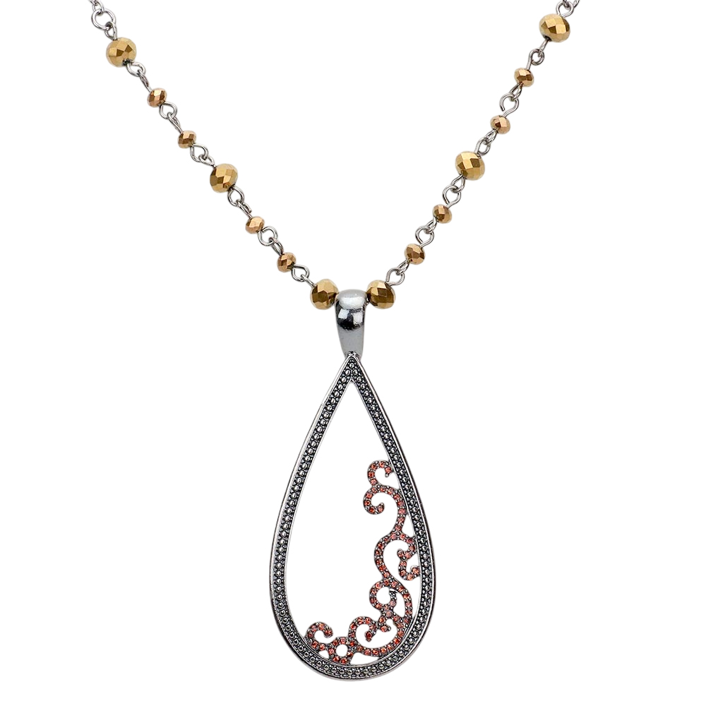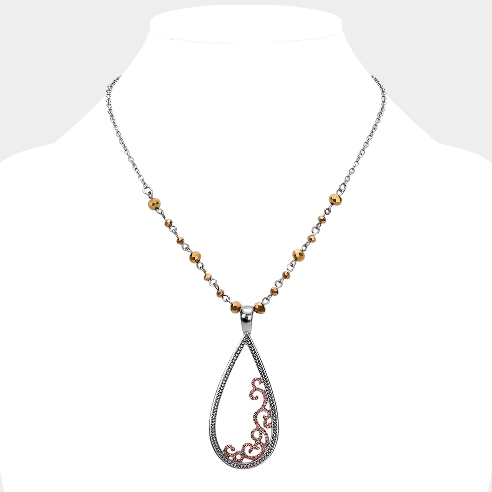Rhinestone Embellished Open Metal Teardrop Pendant Necklace