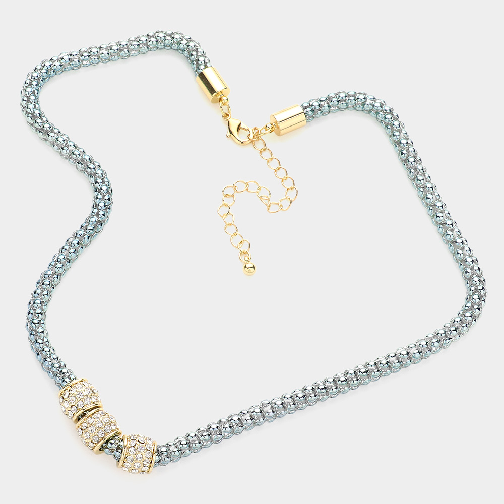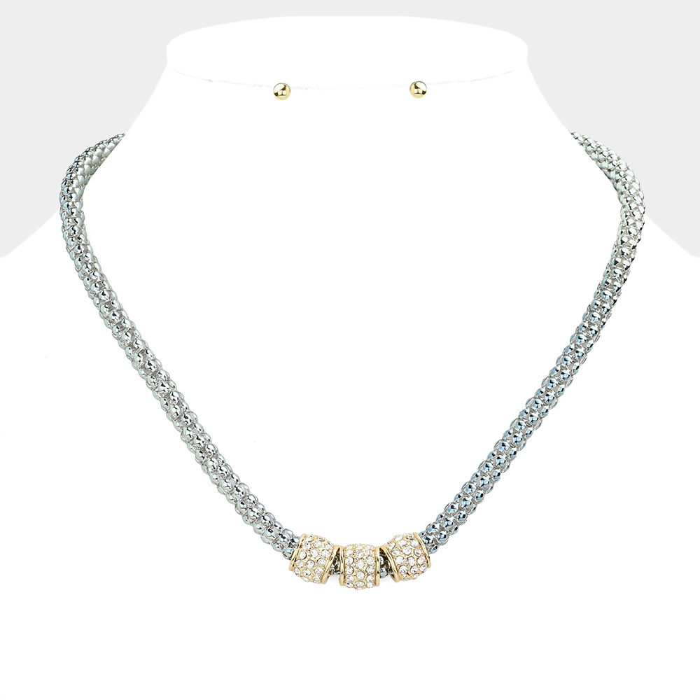 Rhinestone Embellished Triple Ring Accented Necklace