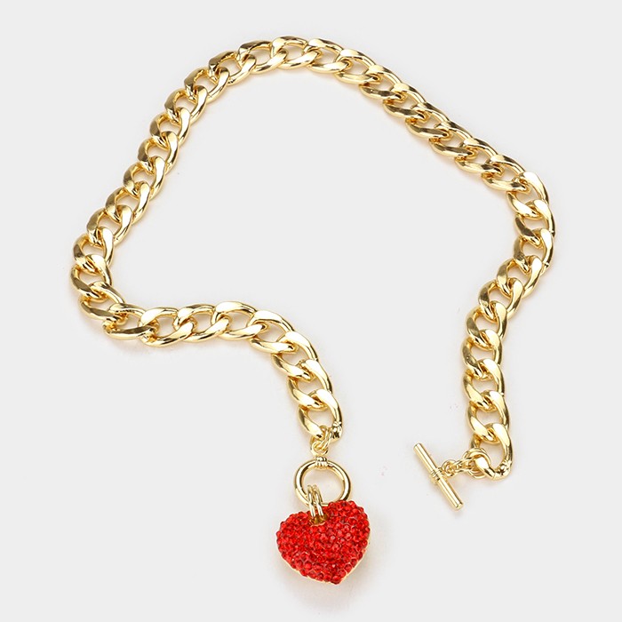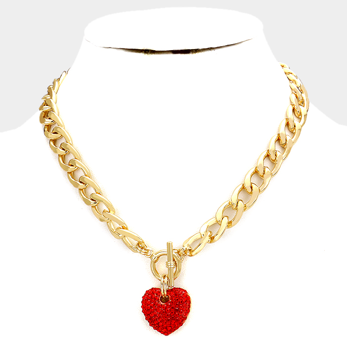 Rhinestone Pave Heart Pendant Toggle Necklace