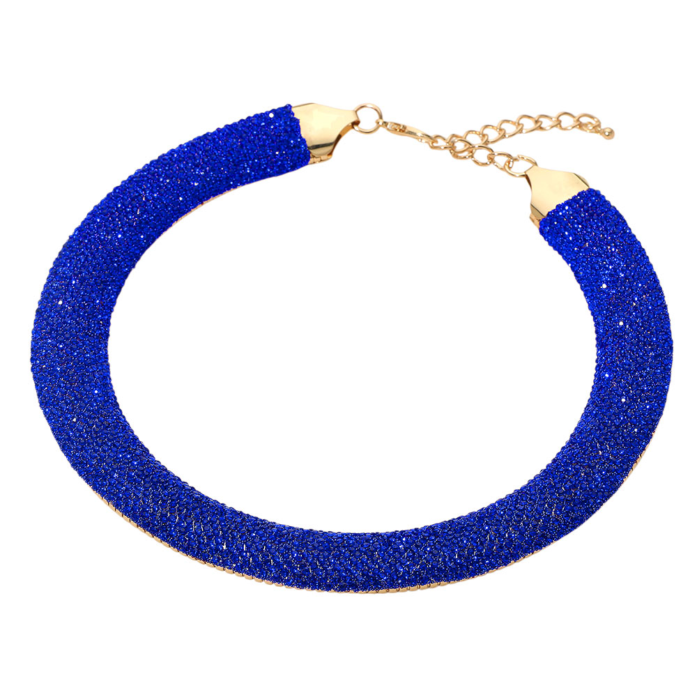 • Statement collar necklace fully embellished with rhinestones for maximum sparkle. Designed with a wide silhouette that hugs the neckline, this glamorous piece adds bold elegance to formal or evening looks.