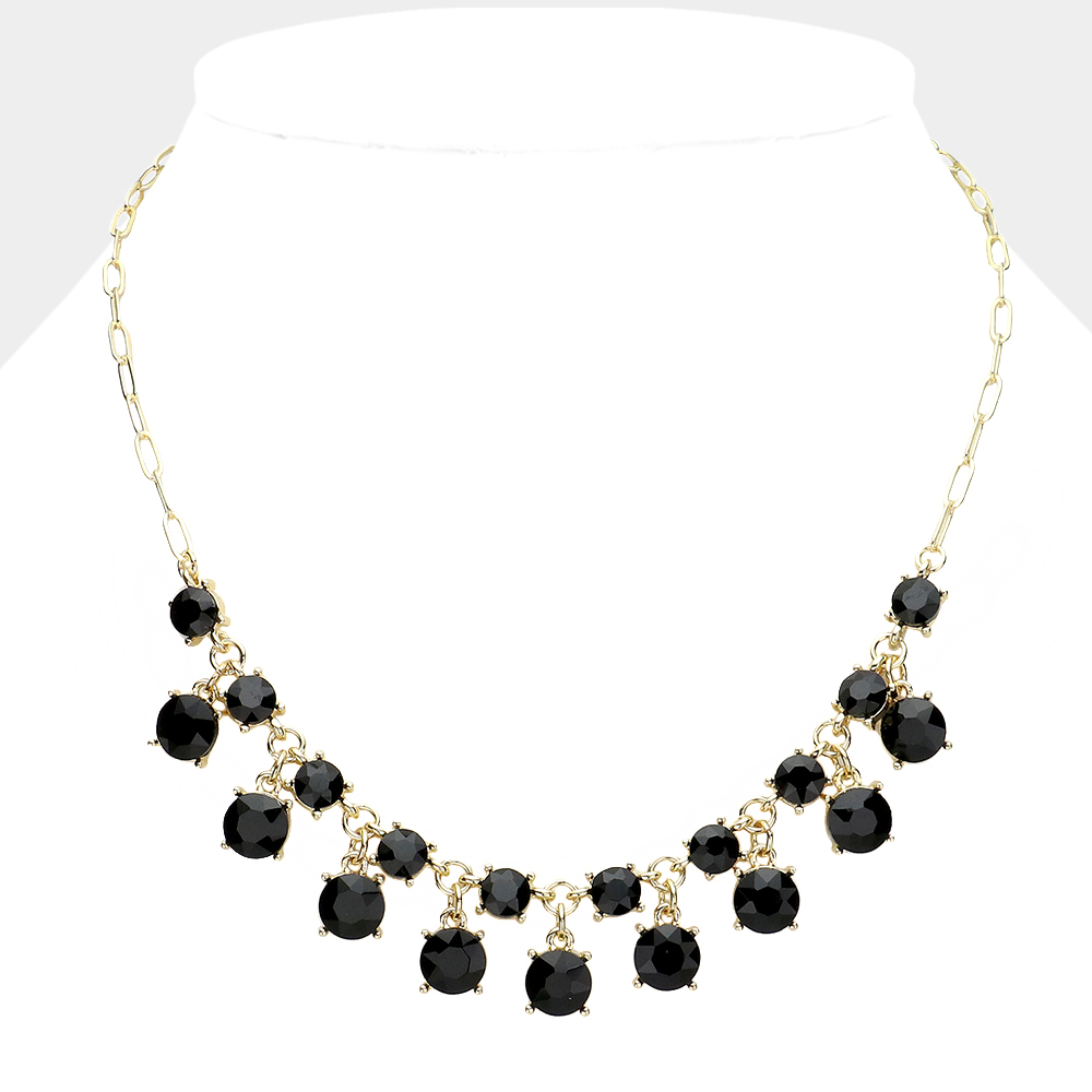Round Glass Stone Cluster Bib Necklace