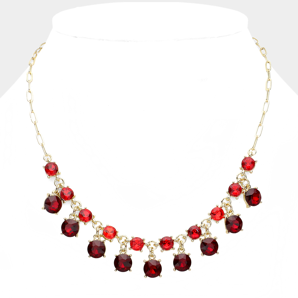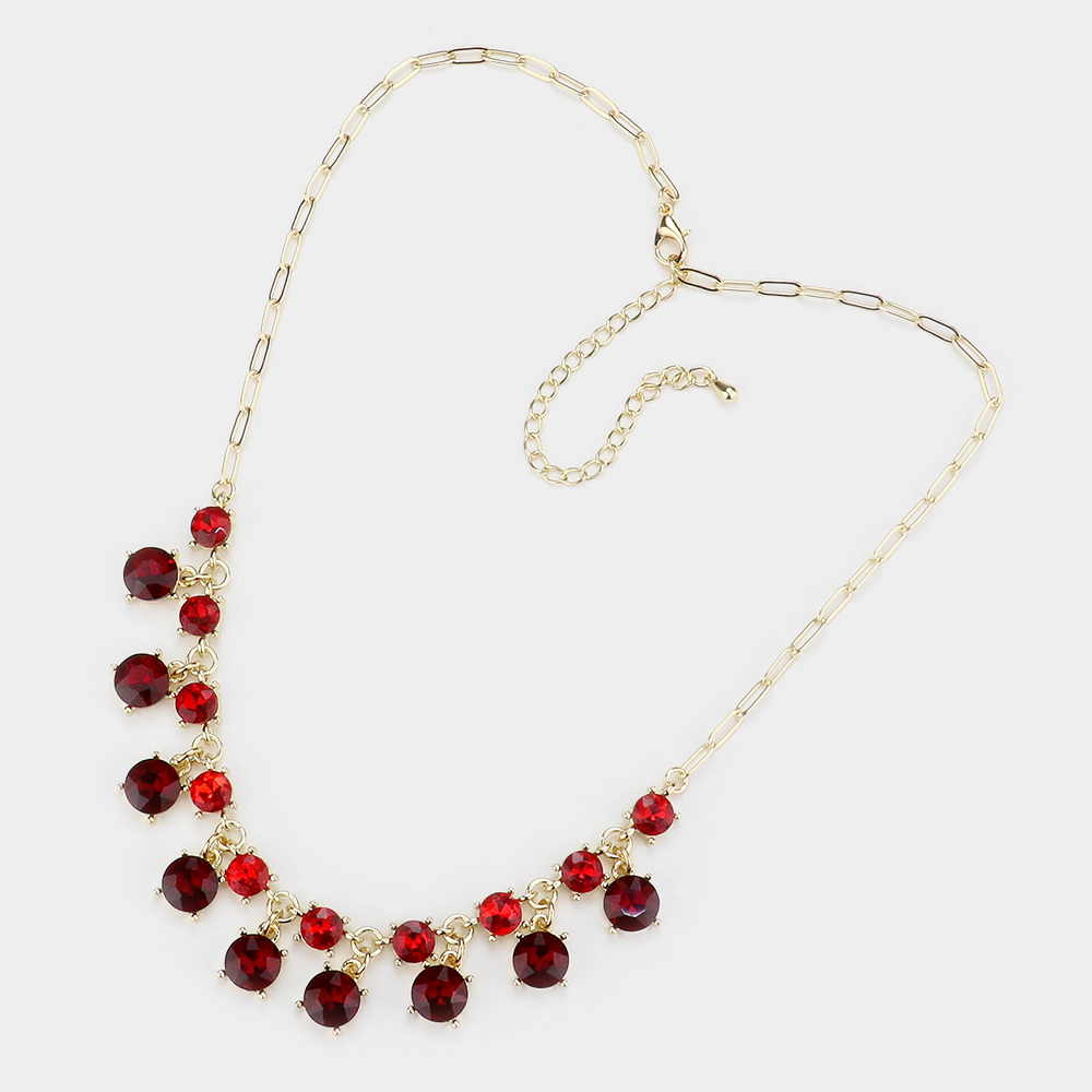 Round Glass Stone Cluster Bib Necklace