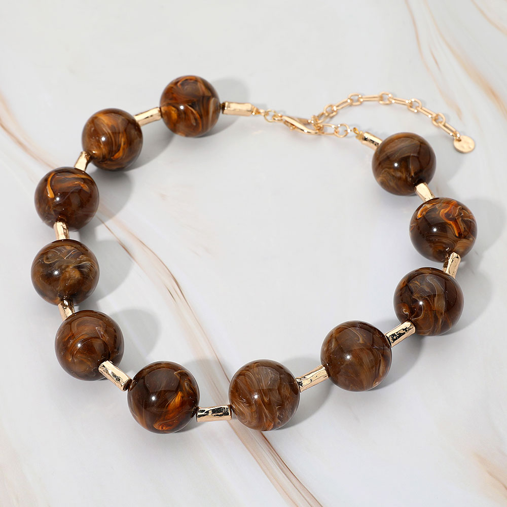 Round Marble Ball Wire Beaded Statement Necklace Round Marble Ball Wire Beaded Statement Necklace Round Marble Ball Wire Beaded Statement Necklace