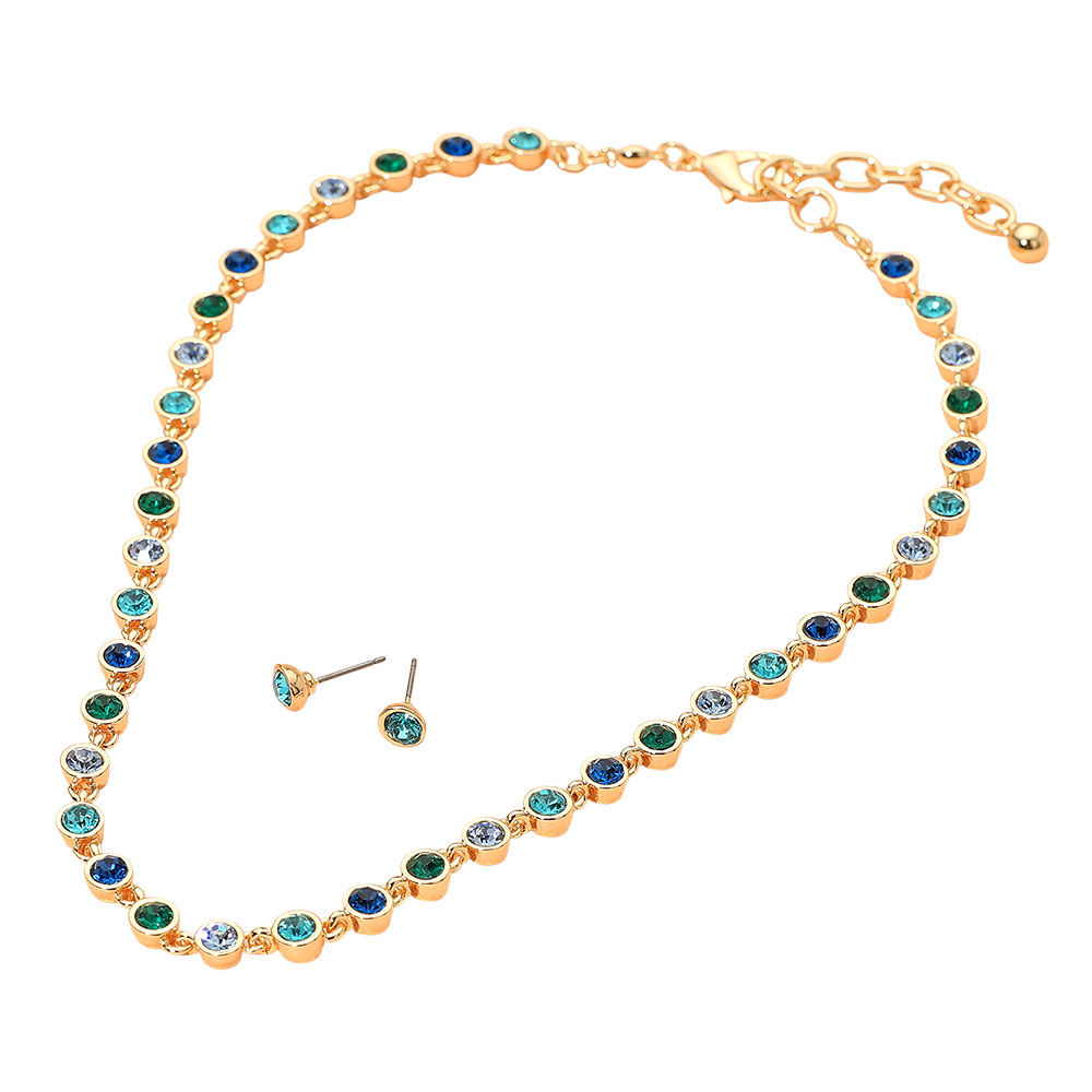 Details • Necklace Size : 16" + 2" L • Decor Size : 0.25" L • Earrings Size : 0.25" L • Add a touch of sparkle to your style with this rhinestone necklace and stud earring set. Featuring dazzling stones in a refined design, this elegant duo offers timeless sophistication for both everyday wear and special occasions, enhancing any outfit with radiant charm. • Lead and Nickel Compliant
