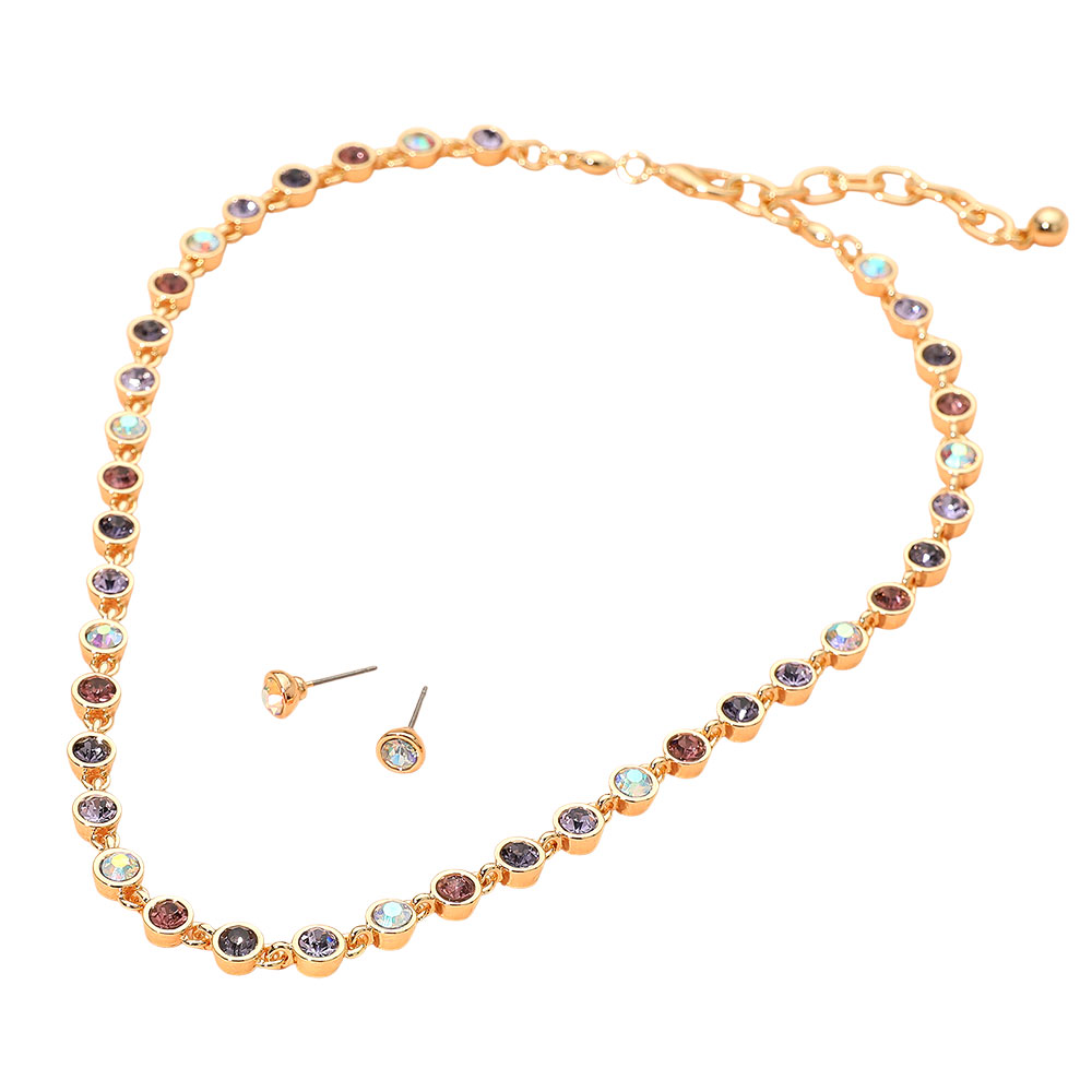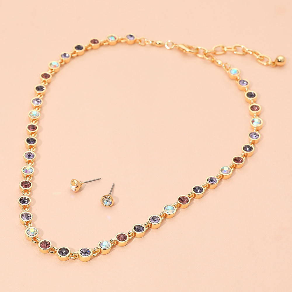 • Add a touch of sparkle to your style with this rhinestone necklace and stud earring set. Featuring dazzling stones in a refined design, this elegant duo offers timeless sophistication for both everyday wear and special occasions, enhancing any outfit with radiant charm.
