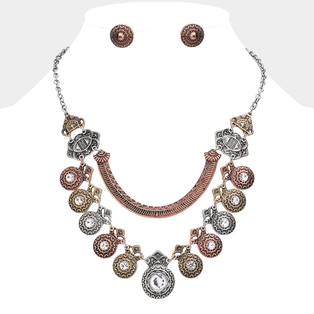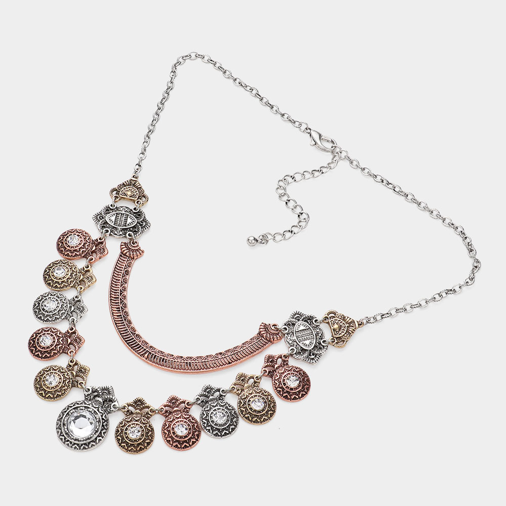 Vintage Floral Metal Accent Faceted Beads Pearl Embellished Statement Necklace