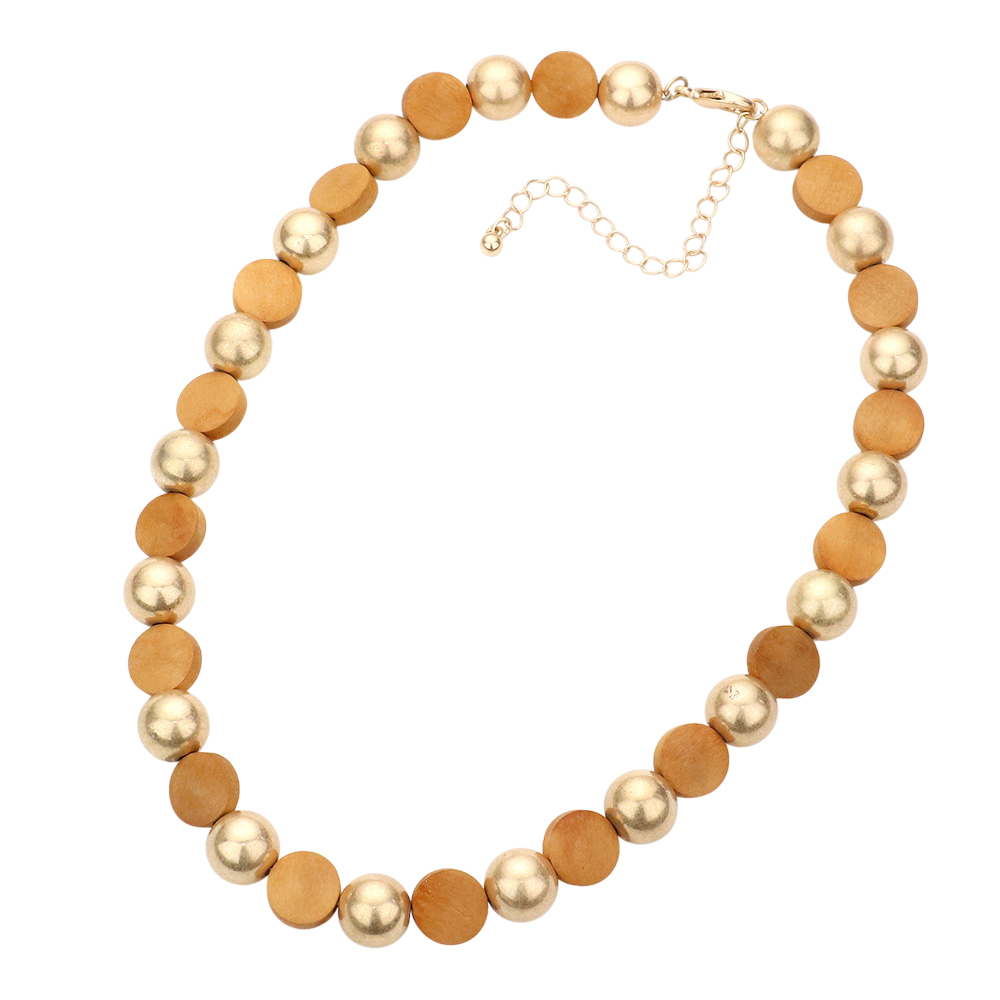 3PCS - Bold Wooden Mixed Beaded Stretch Resin Link Multi Layered Bracelets