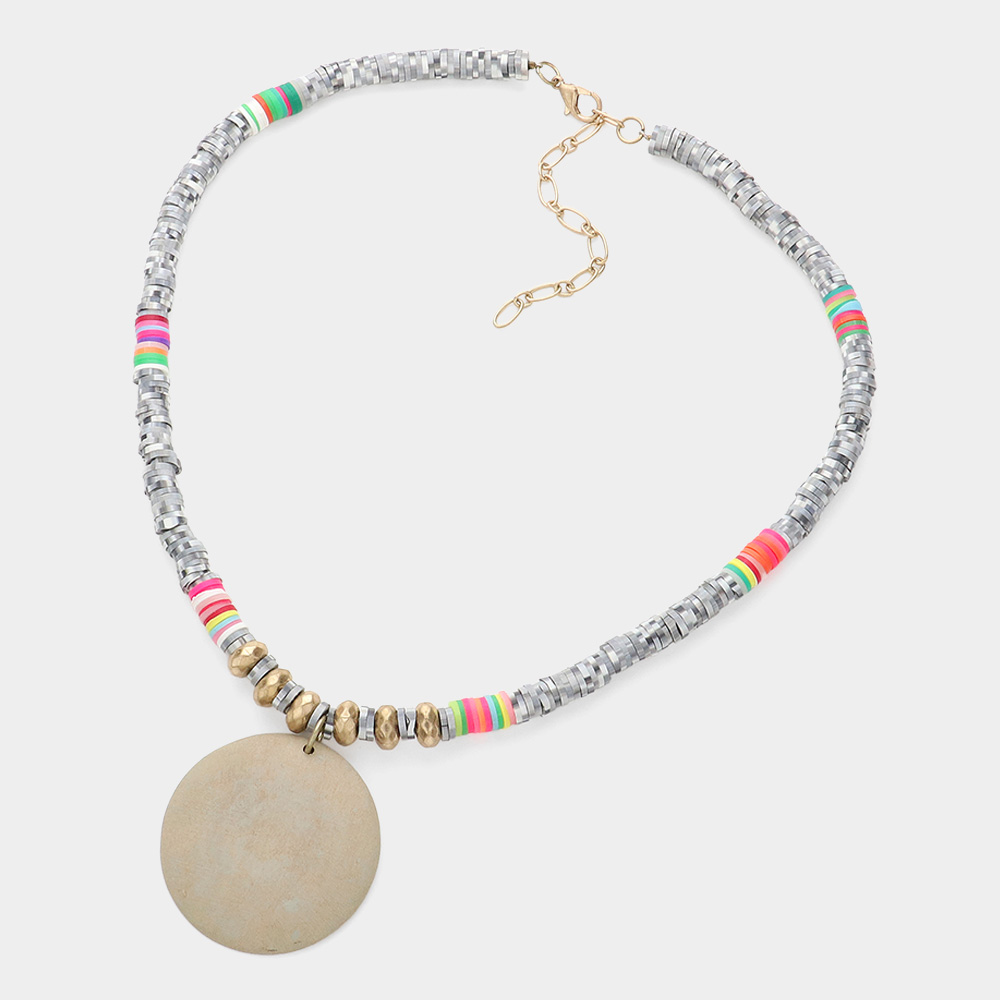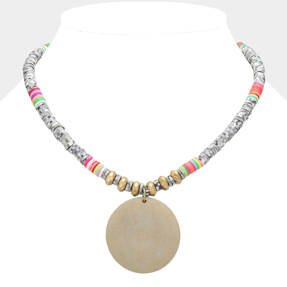 Round Wood Pendant disc Bead Necklace