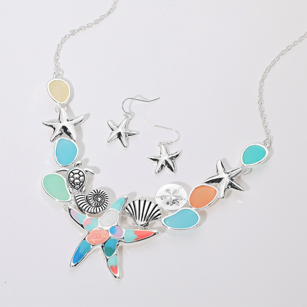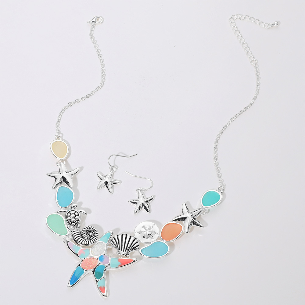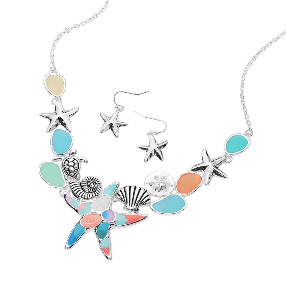 Sea Glass Starfish Metal Seashell Sand Dollar Sea Turtle Embellished Necklace