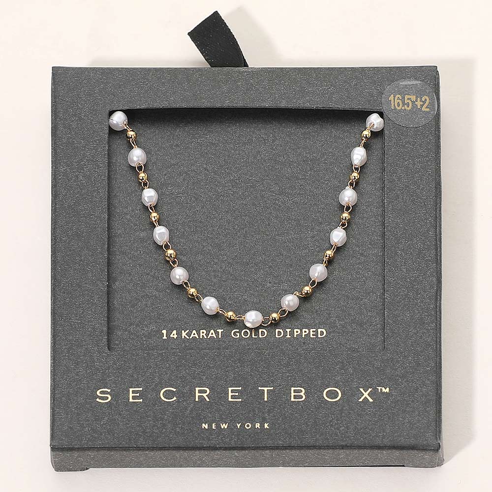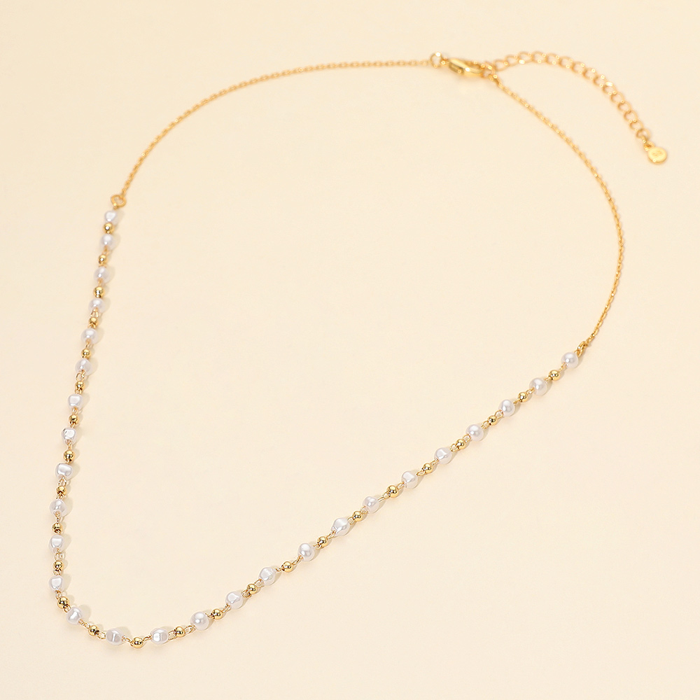 Details • Necklace Size : 16.5" + 2" L • Decor Size : 0.1" L • A refined beaded chain necklace featuring softly shaped beads spaced along a delicate chain. Its lightweight, minimalist design adds subtle elegance to any outfit. Perfect for daily wear, layering, or gifting, offering a timeless and versatile accessory. • Gold Dipped