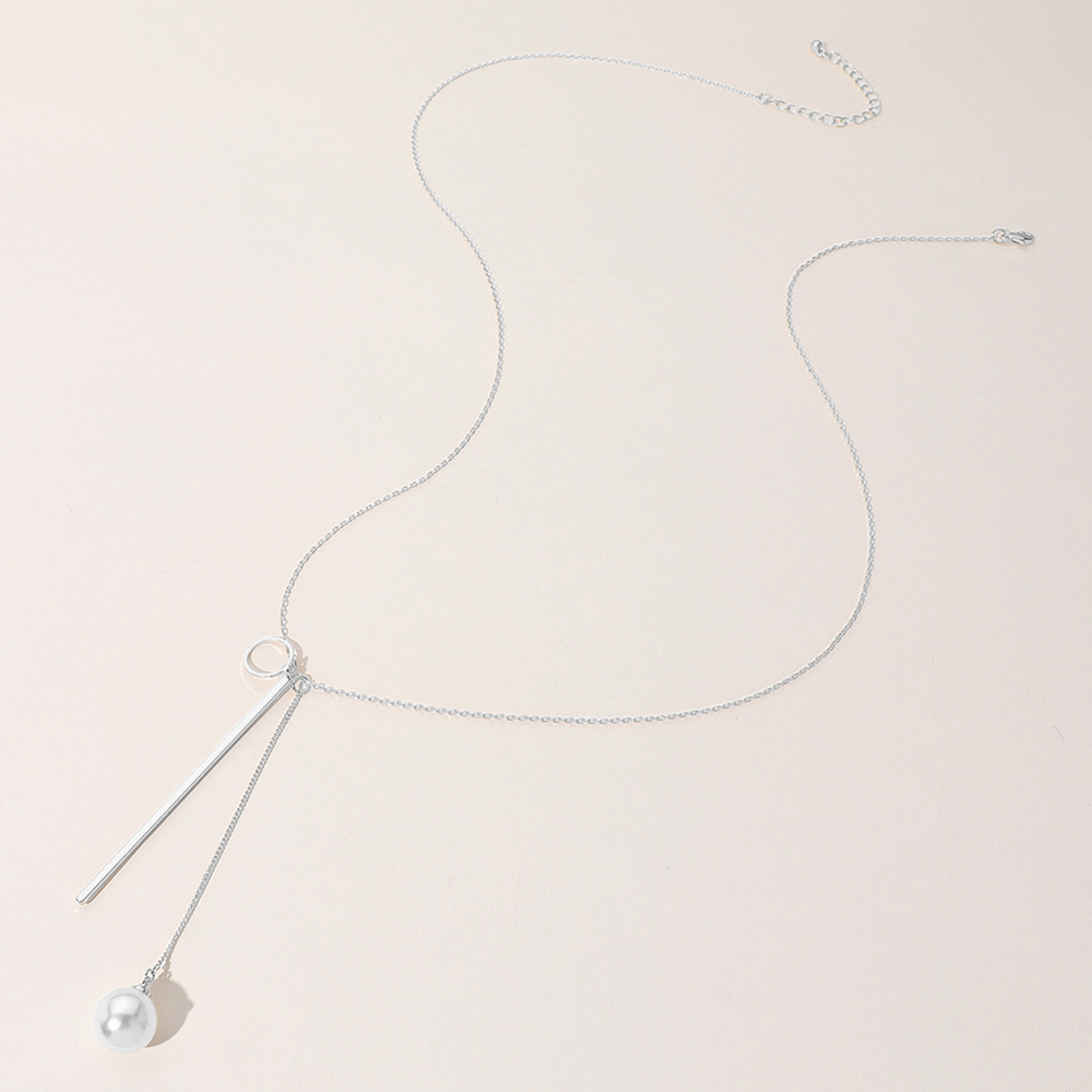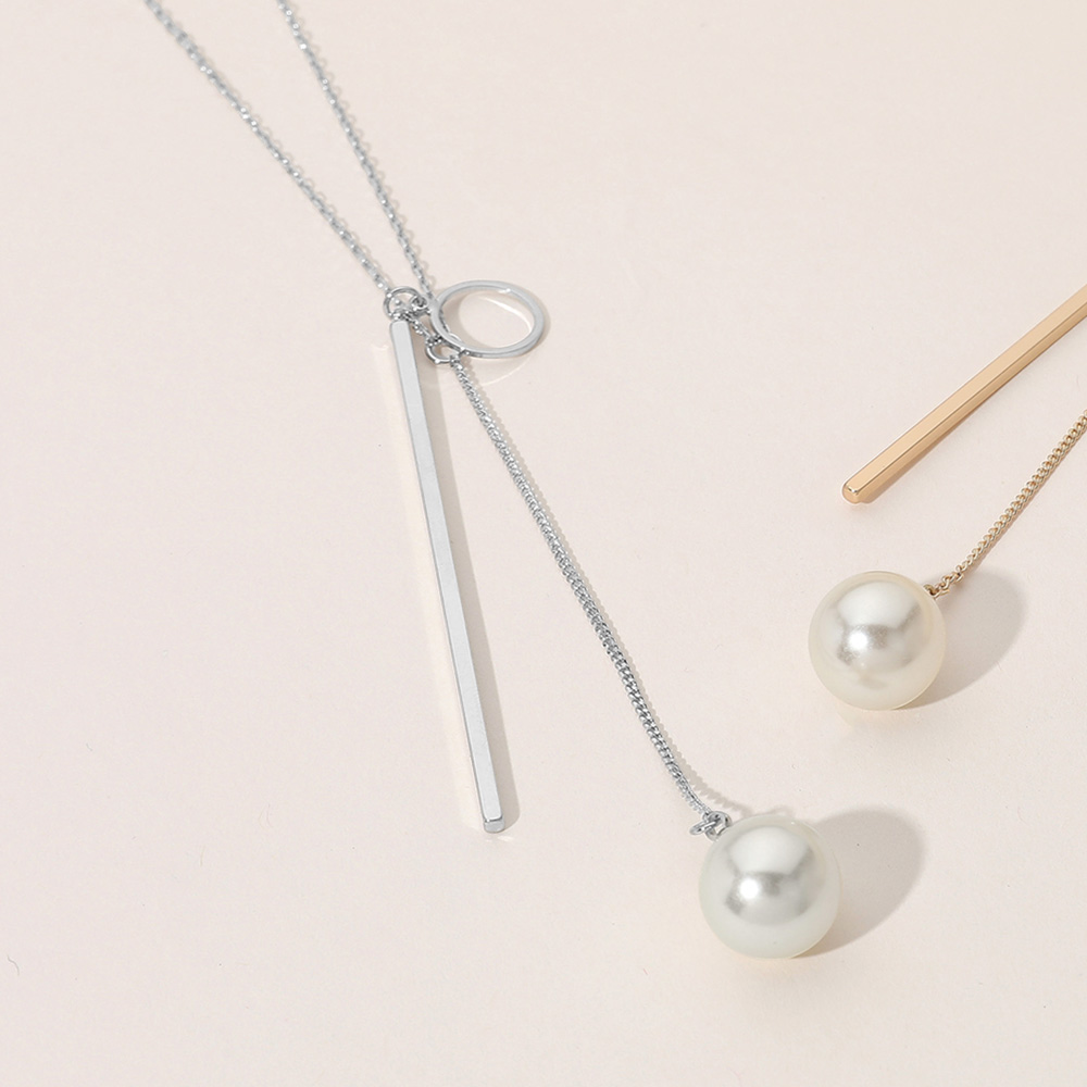 SECRET BOX_Brass Metal Geometric Pearl Tip Necklace