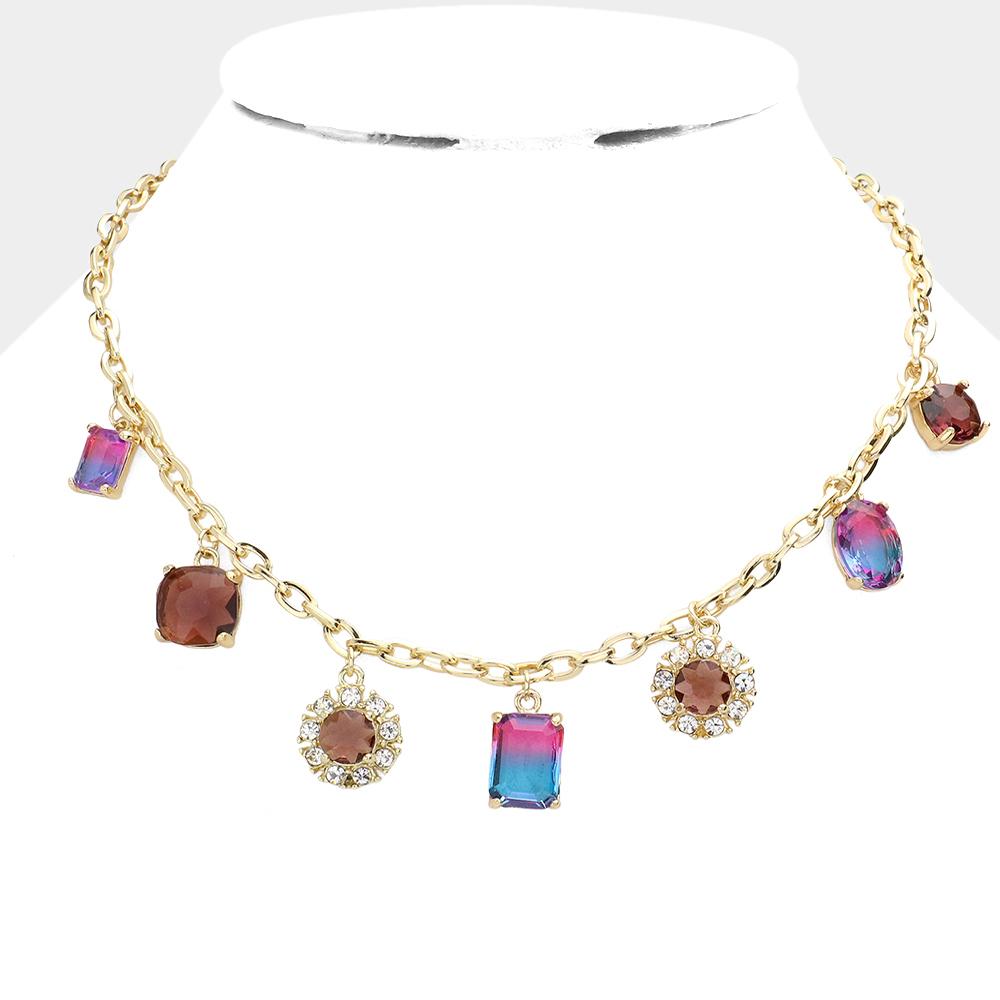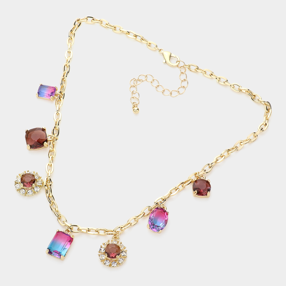 Glass Crystal Metal Flower Leaf Evening Bracelet