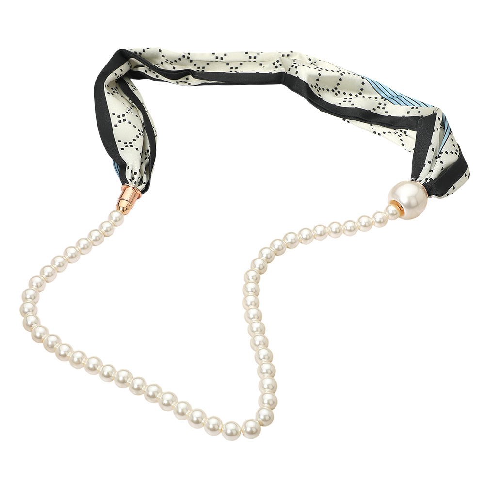 SECRET BOX_Pattern Print Fabric Scarf Pearl Magnetic Necklace