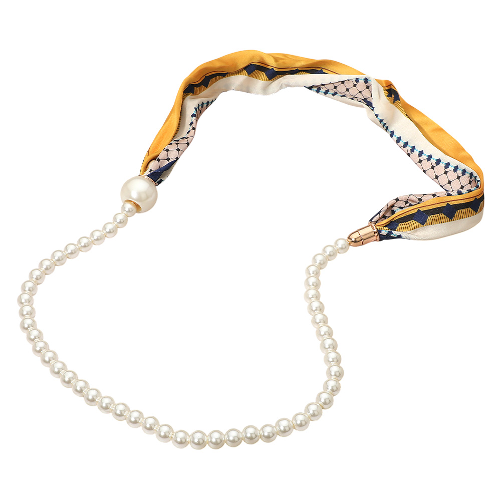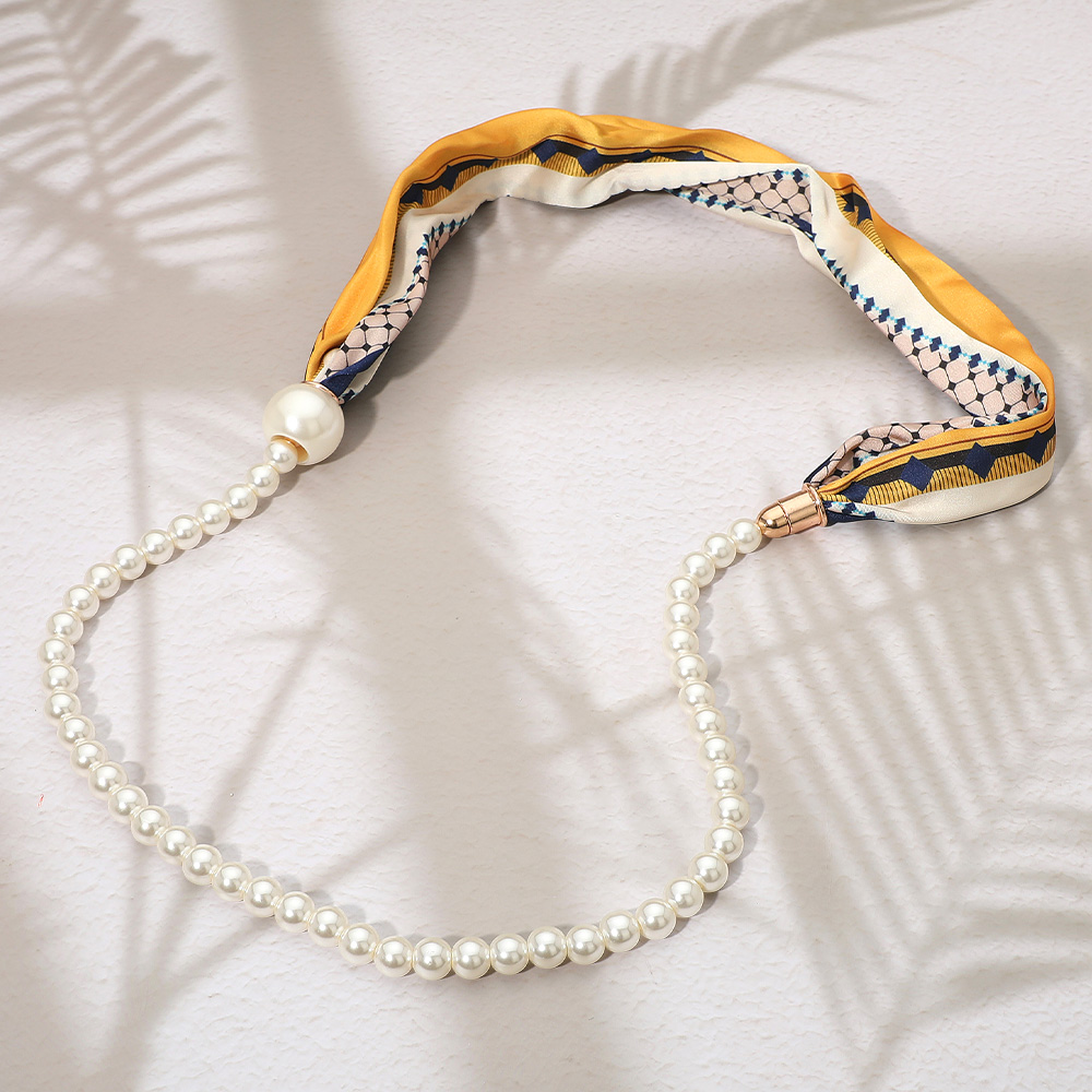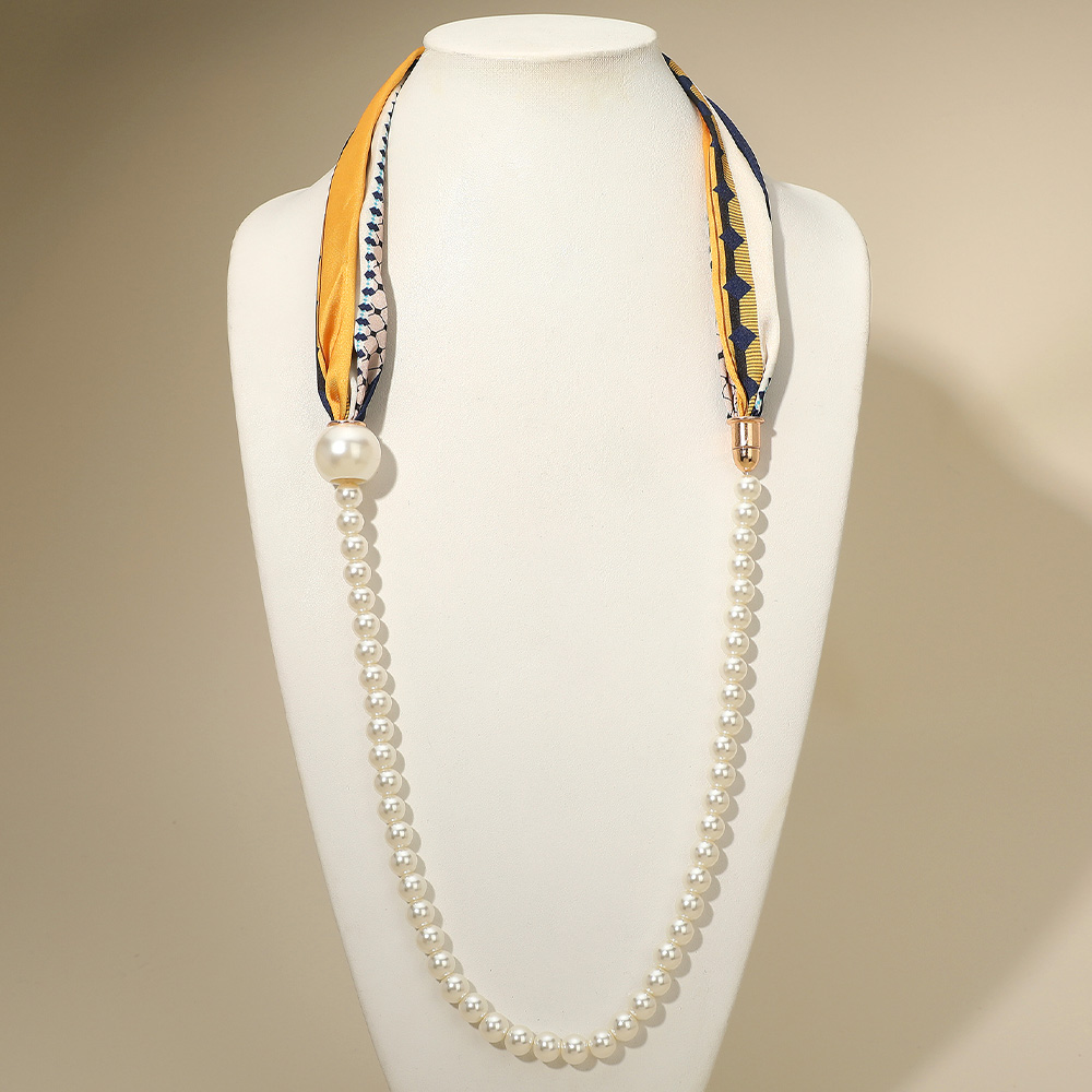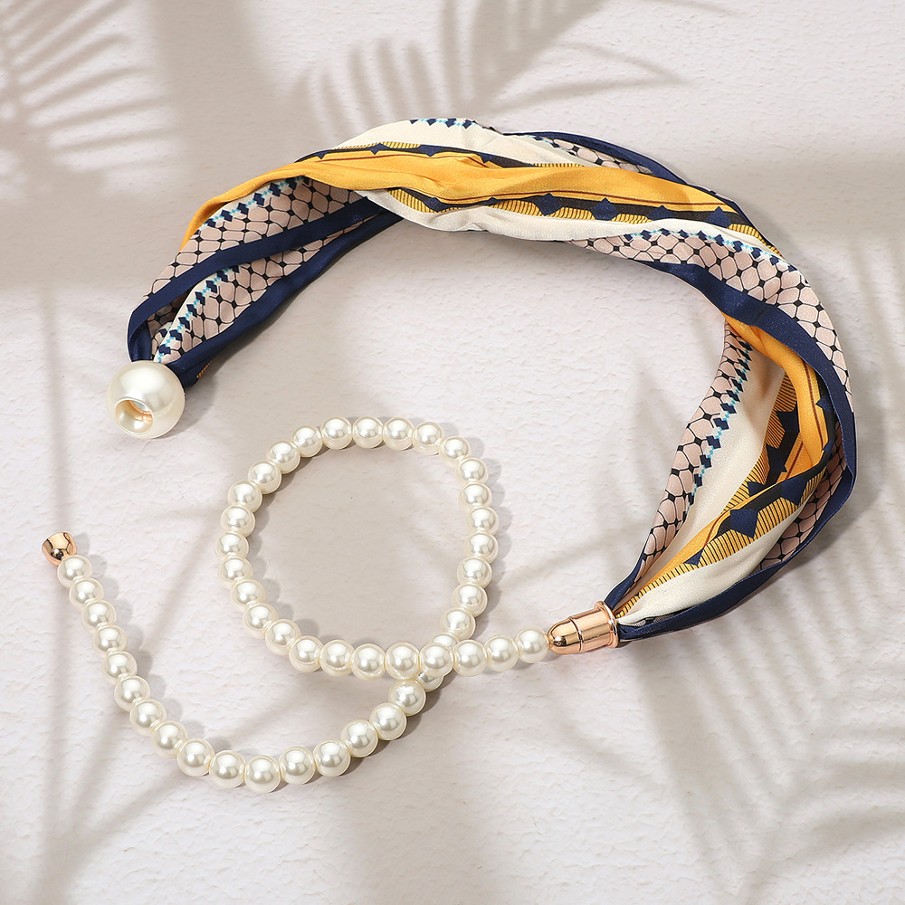 SECRET BOX_Pattern Print Fabric Scarf Pearl Magnetic Necklace