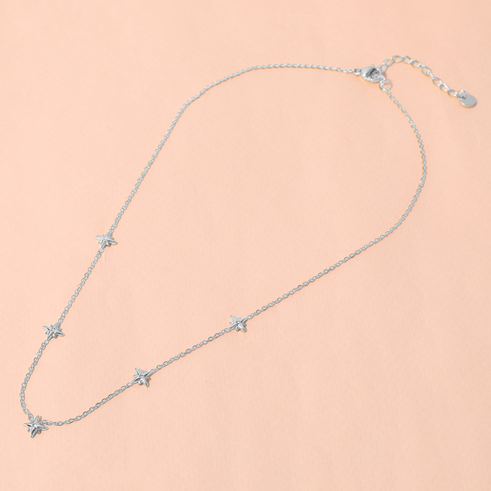 SECRET BOX_Stainless Steel Stone Pointed Starburst Station Necklace