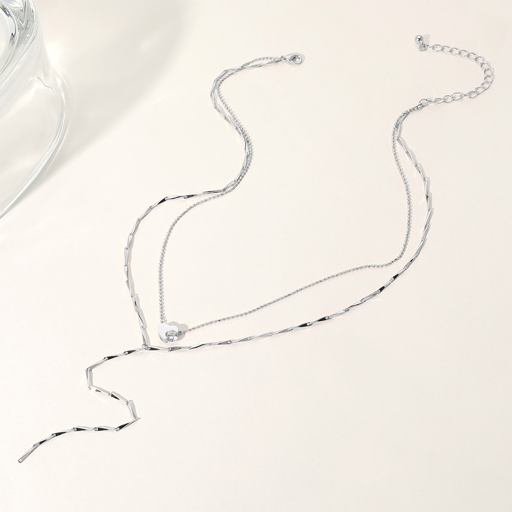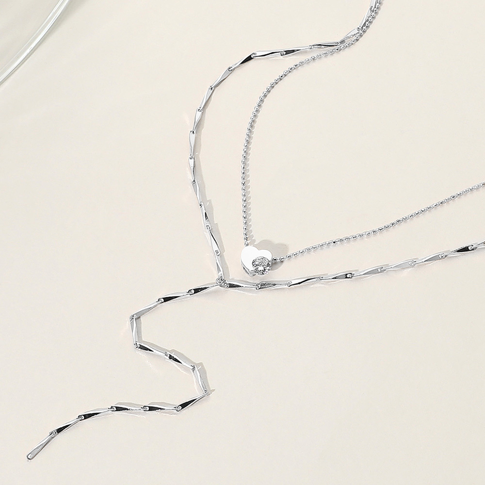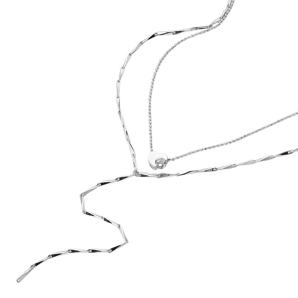 Secret Box_Stone Heart Accented Double Layered Y Necklace