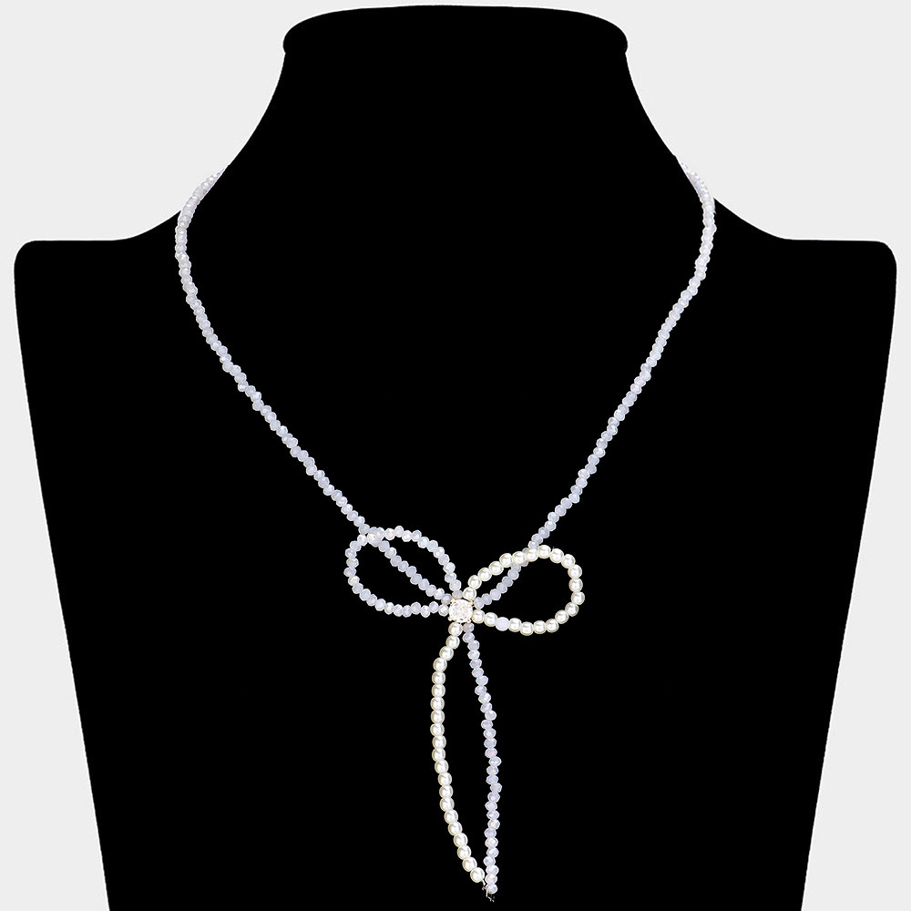 SECRET BOX_Stone Pointed Faceted Beaded Bow Necklace