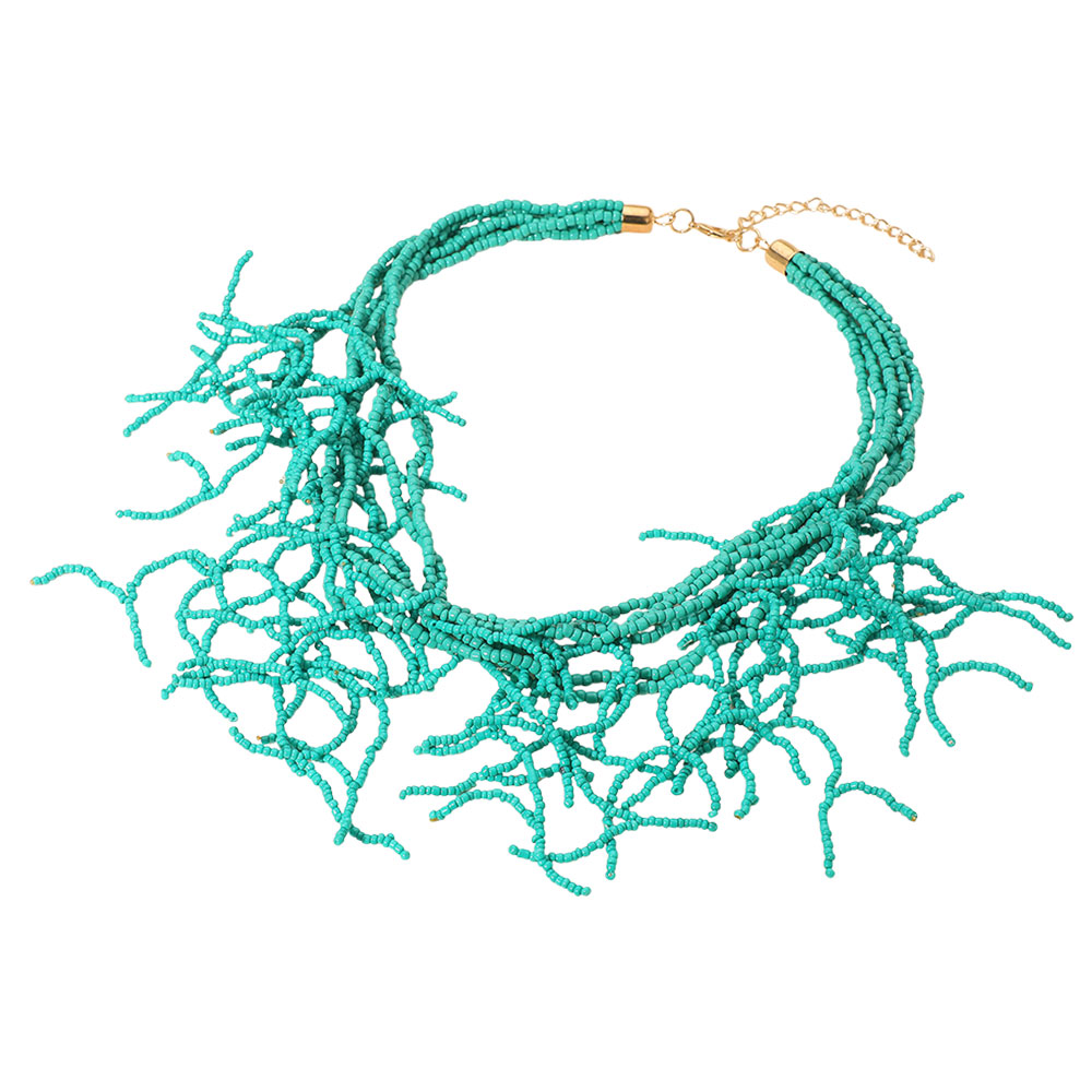 Details • Necklace Size : 18" + 3.25" L • Decor Size : 3" L • Elevate any look with this statement beaded coral necklace featuring layered clustered strands and branch-inspired shapes. Includes an adjustable extension chain for a comfortable fit. A bold, artistic accessory perfect for standout styling. • Gold Dipped • Lead and Nickel Compliant • Made In Korea