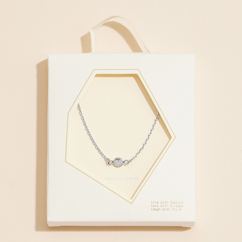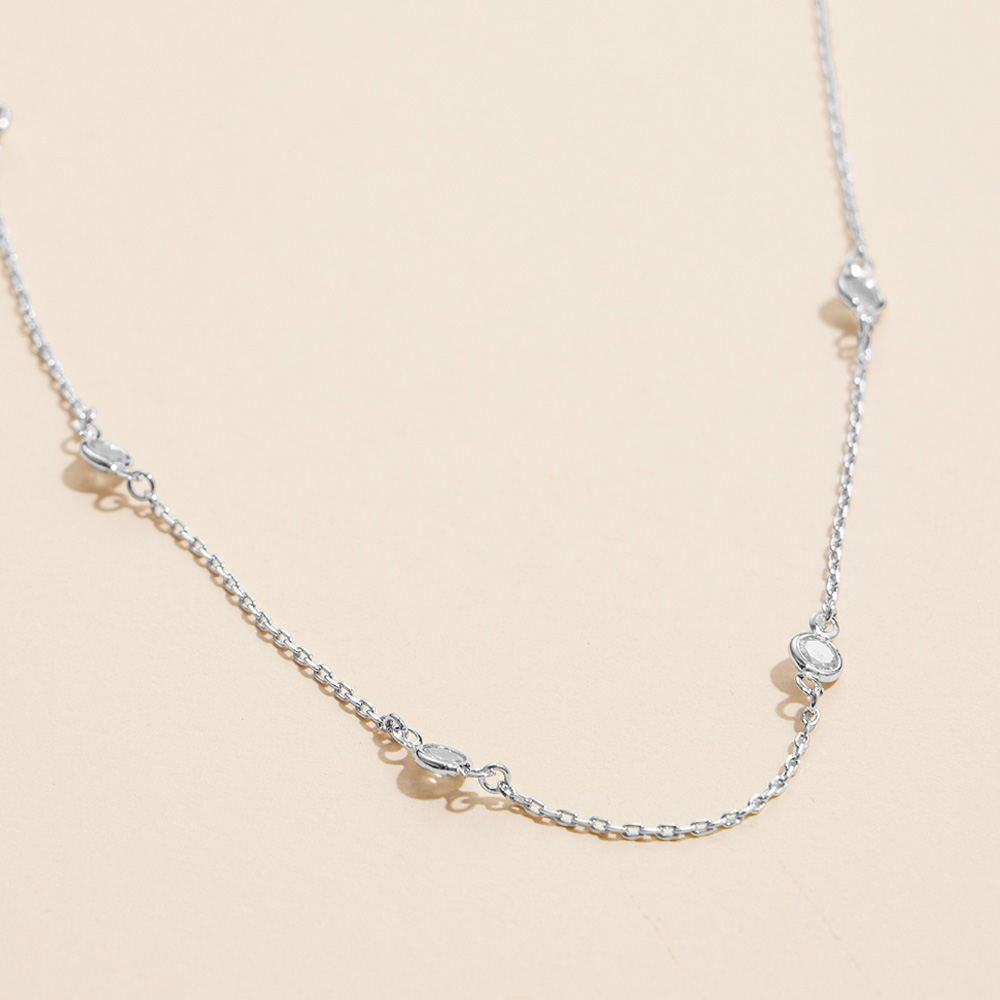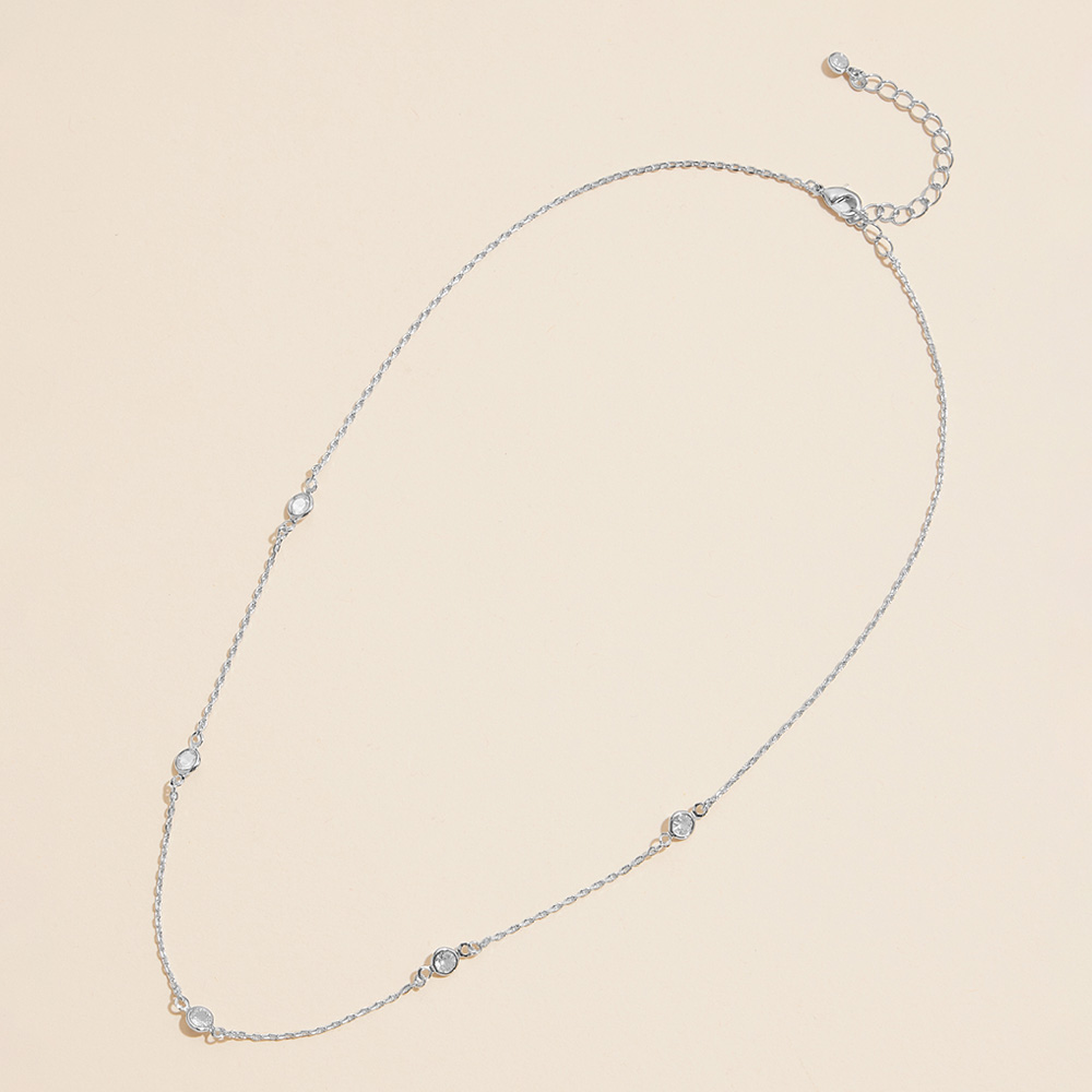 Semi Fine Collection - 18K White Gold Dipped Stone Bezel Station Necklace