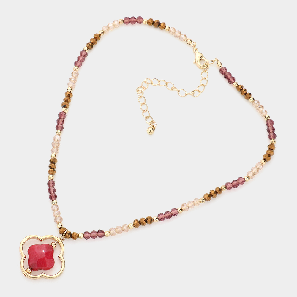 Reversible Stainless Steel Mother of Pearl Clover Pendant Necklace