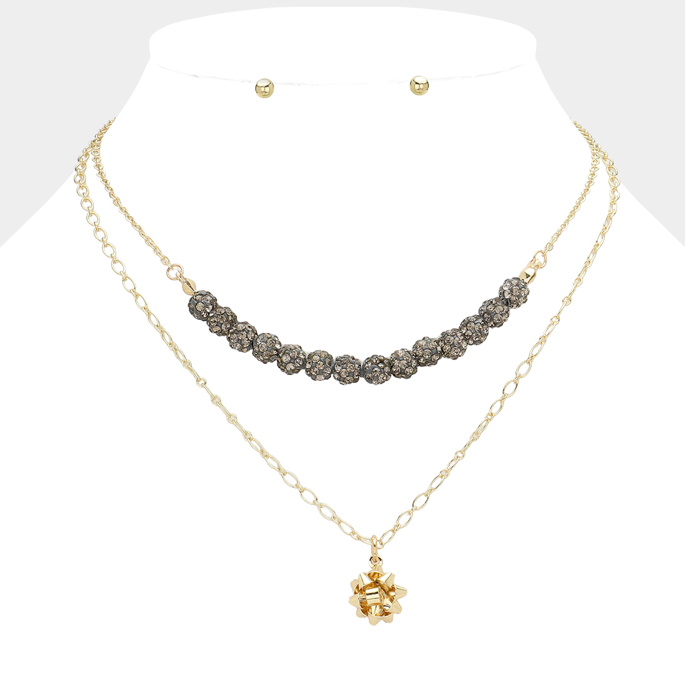 Shamballa Ball Christmas Gift Bow Pendant Necklace
