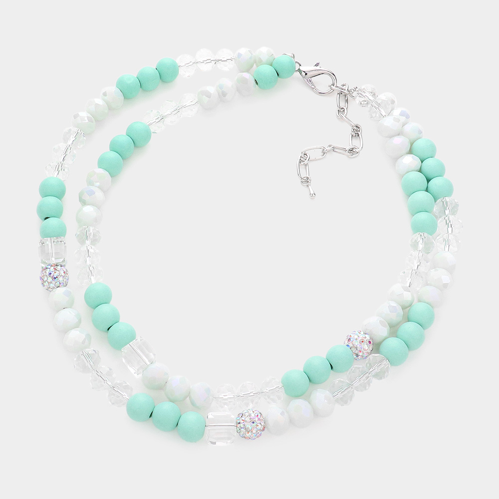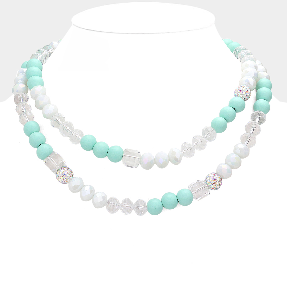 Shamballa Wood Ball Faceted Beaded Double Layered Necklace