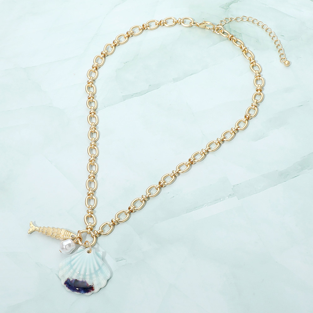 • Coastal-inspired pendant necklace featuring a sculpted shell charm paired with a delicate accent detail on a classic chain. Designed to add an effortless beachy touch to everyday outfits, this necklace is ideal for seasonal collections, resort styling, and giftable accessory assortments for boutiques and online shops.