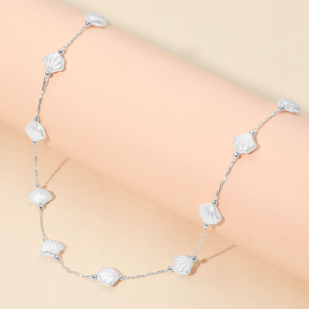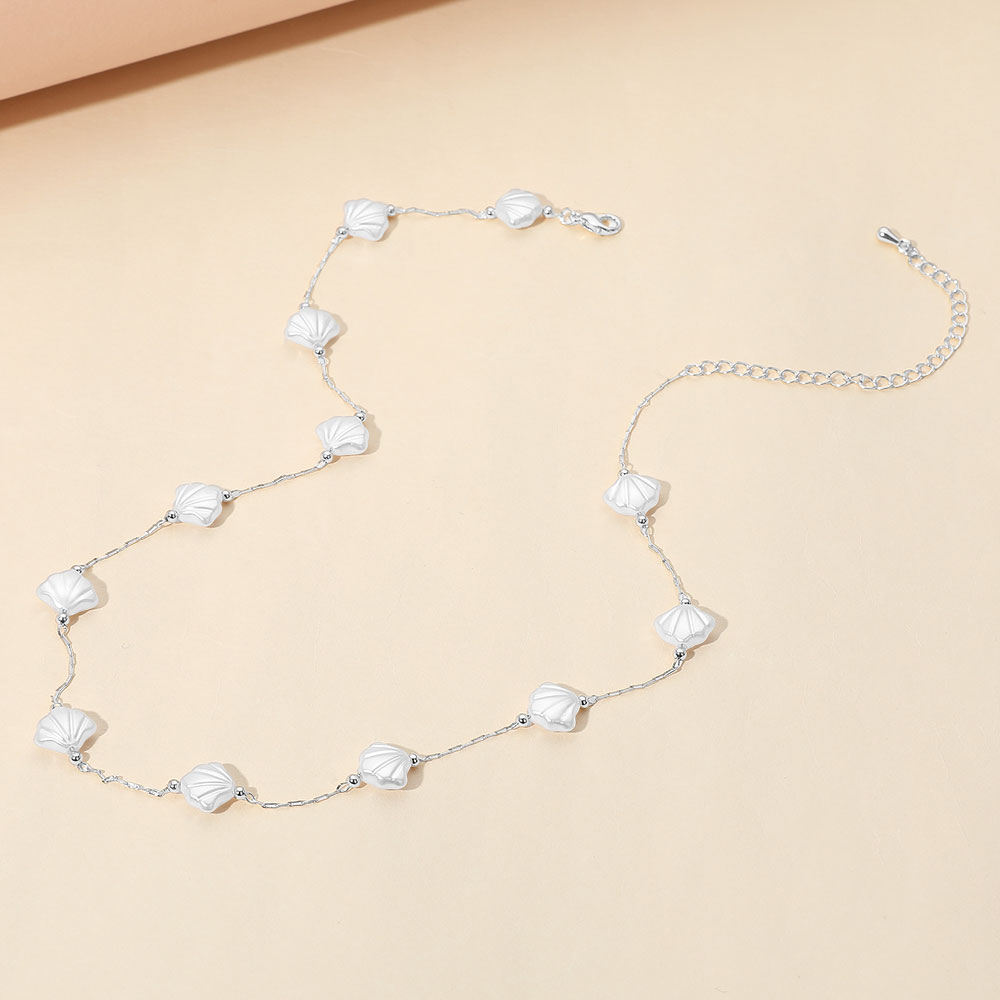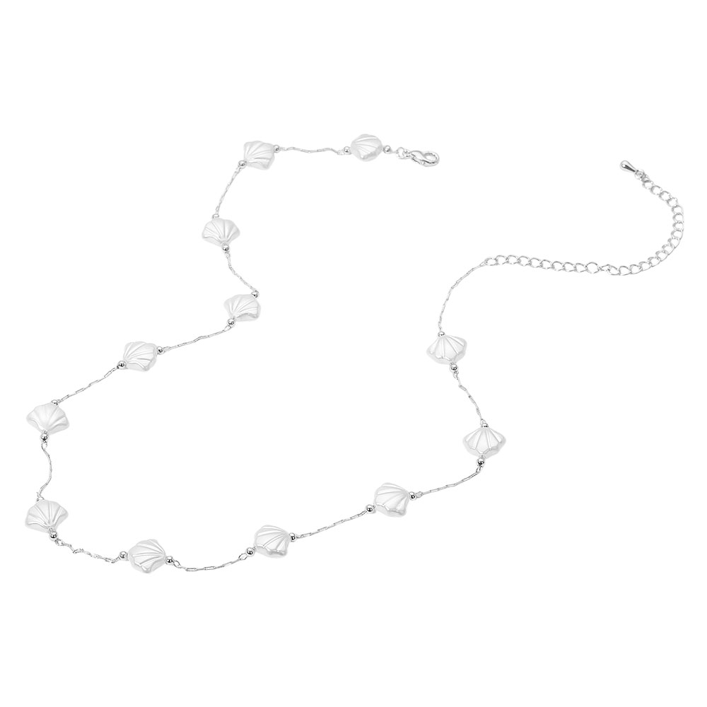 Details • Necklace Size : 16" + 3.25" L • Decor Size : 0.4" L • Delicate necklace featuring sculpted shell-shaped beads linked with a fine chain. A refined accessory for layering or wearing solo, perfect for beach or summer vibes. • Brass • Lead and Nickel Compliant