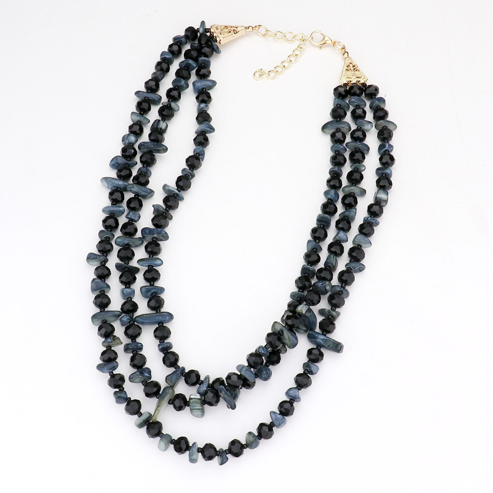 Shell Stone Faceted Beaded Triple Layered Bib Necklace