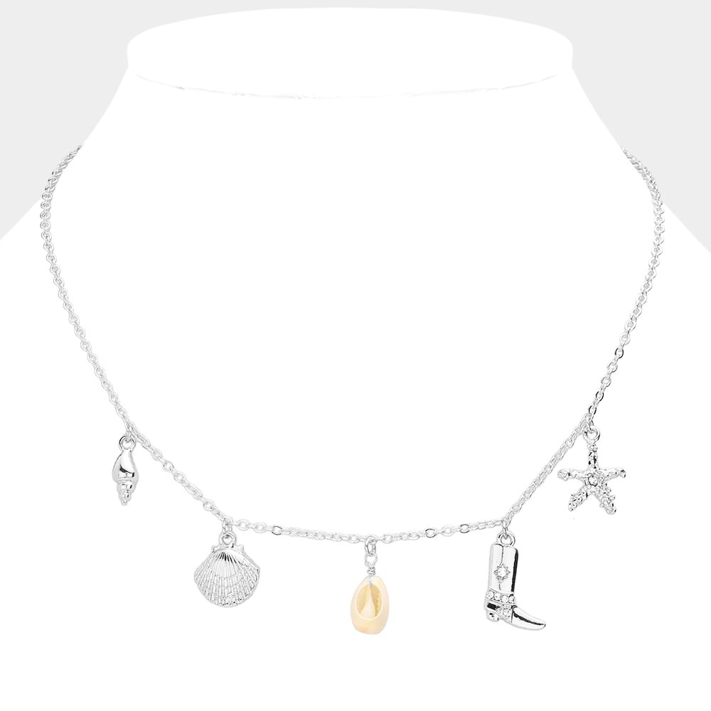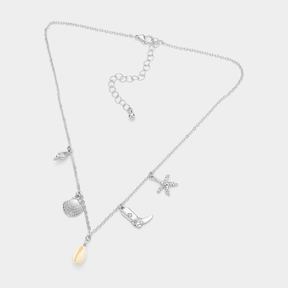 Bold Starfish Accent Seashell Pendant Natural Stone Beaded Statement Necklace