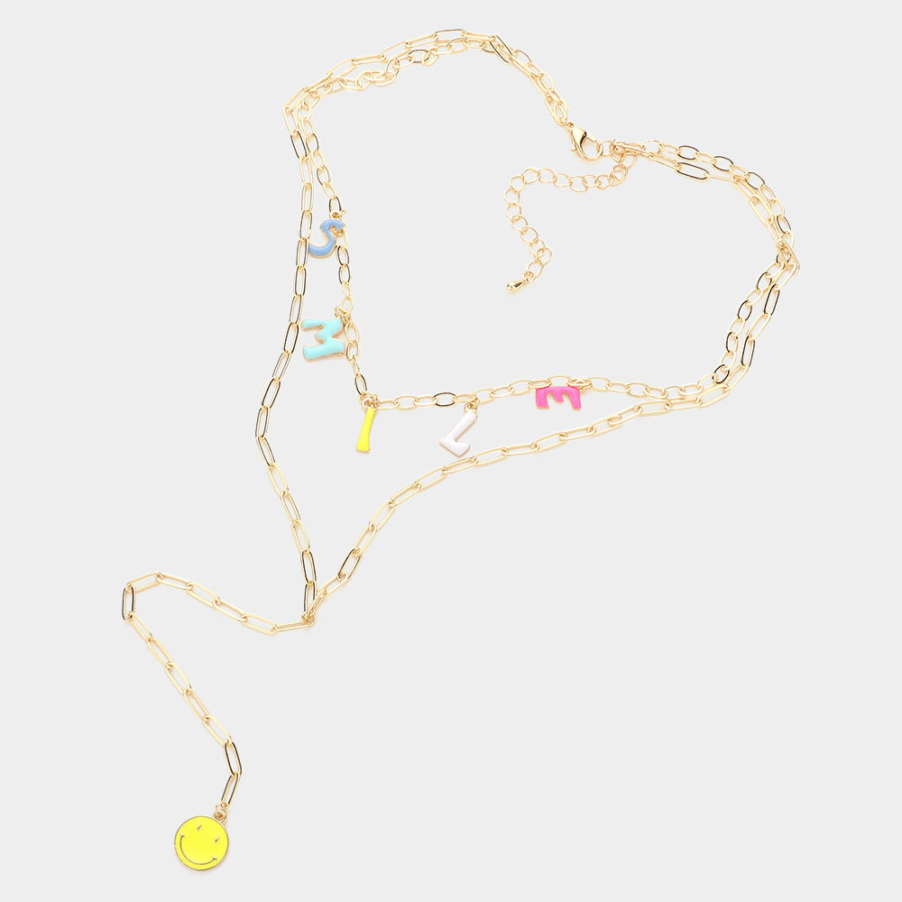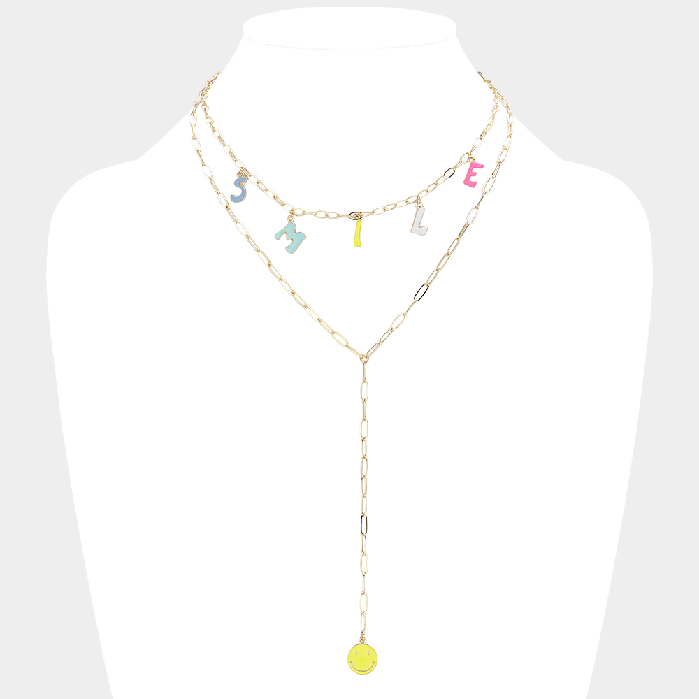 Smile Message Emoji Pendant Double Layered Y Necklace