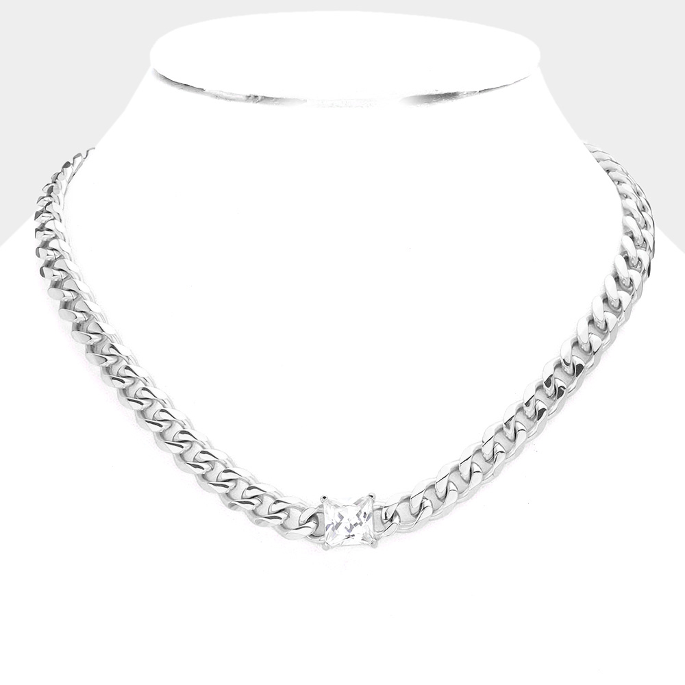18 INCH, 6mm Stainless Steel Cuban Chain Necklace