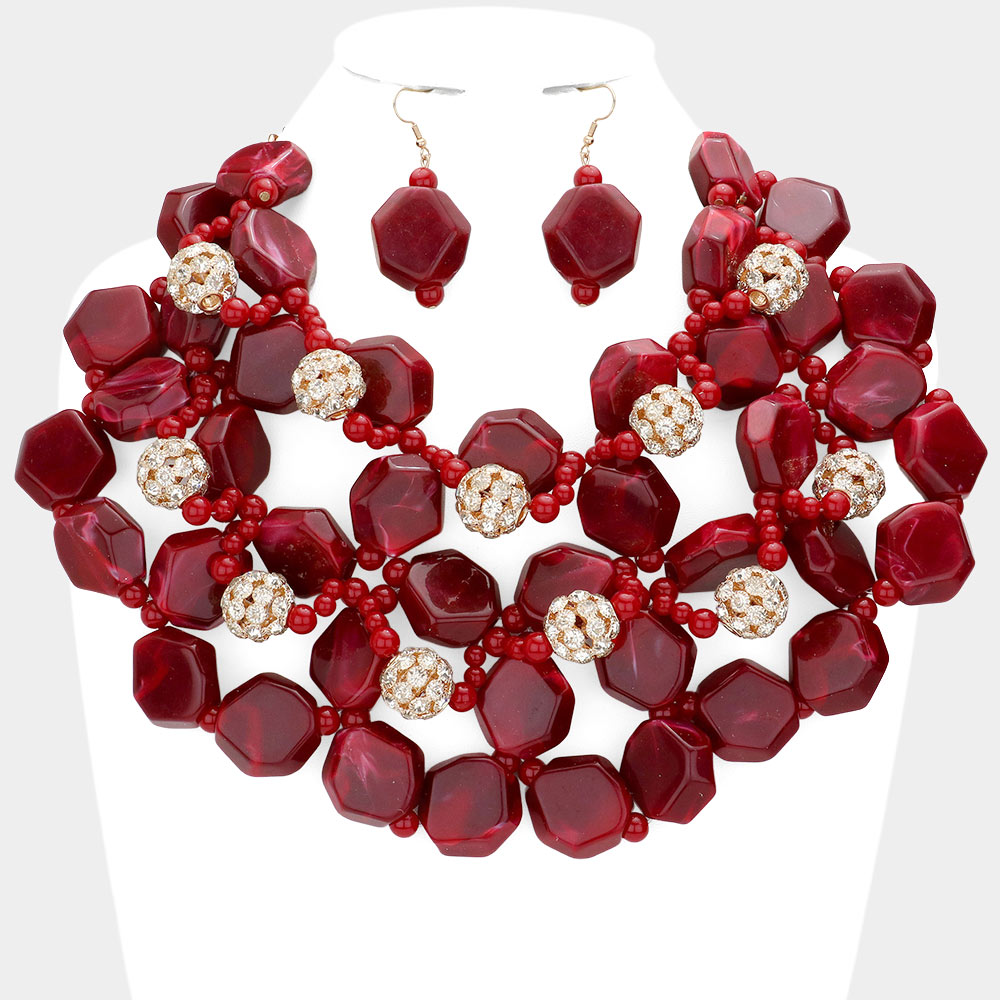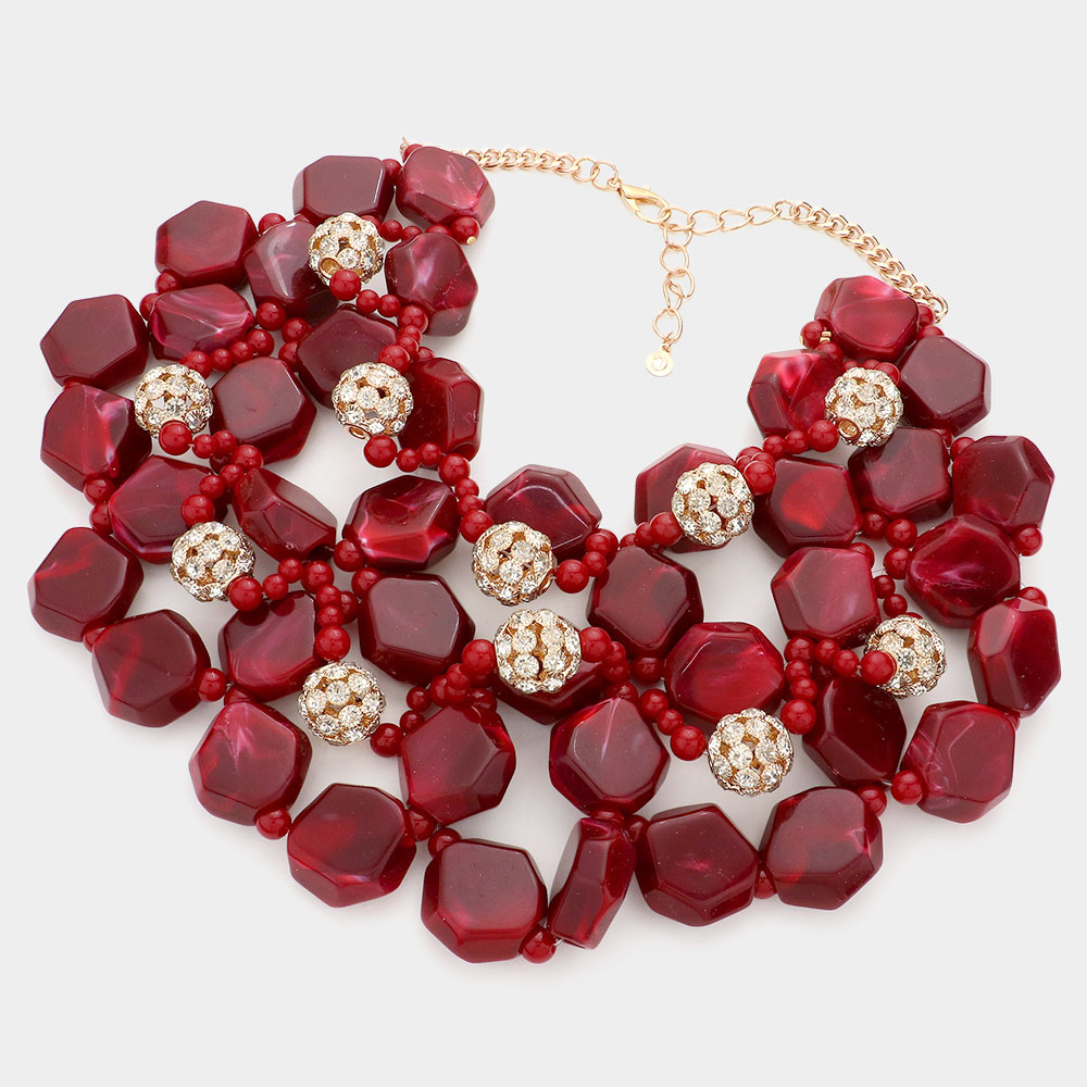 Chunky Marbled Beads Pearl Beaded Statement Necklace
