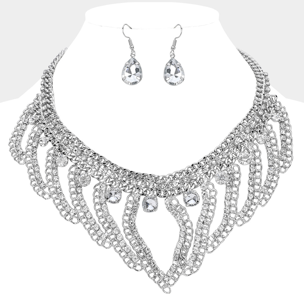 Stone Cluster Pointed Chunky Abstract Chain Necklace
