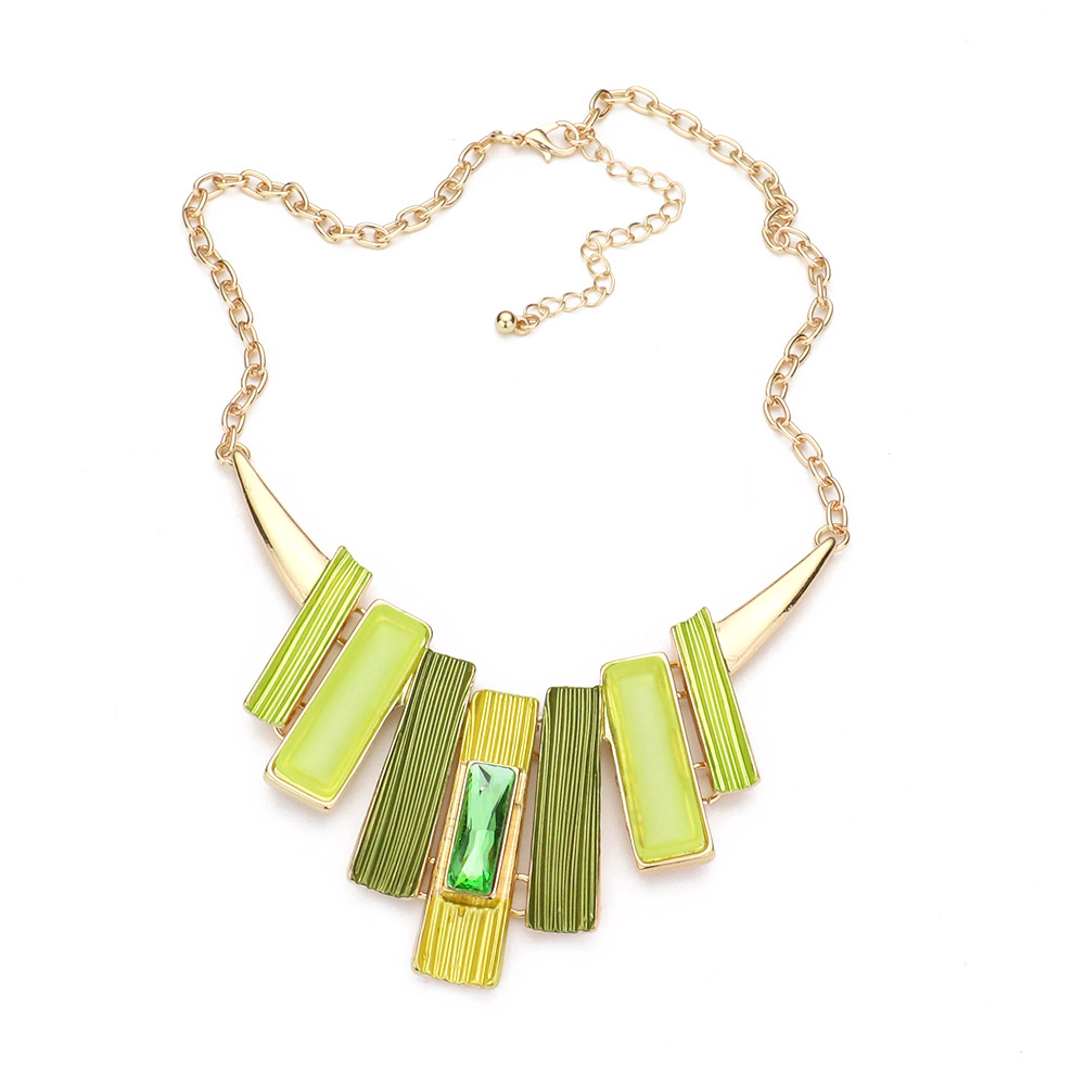 Stone Embellished Colored Metal Rectangle Link Necklace