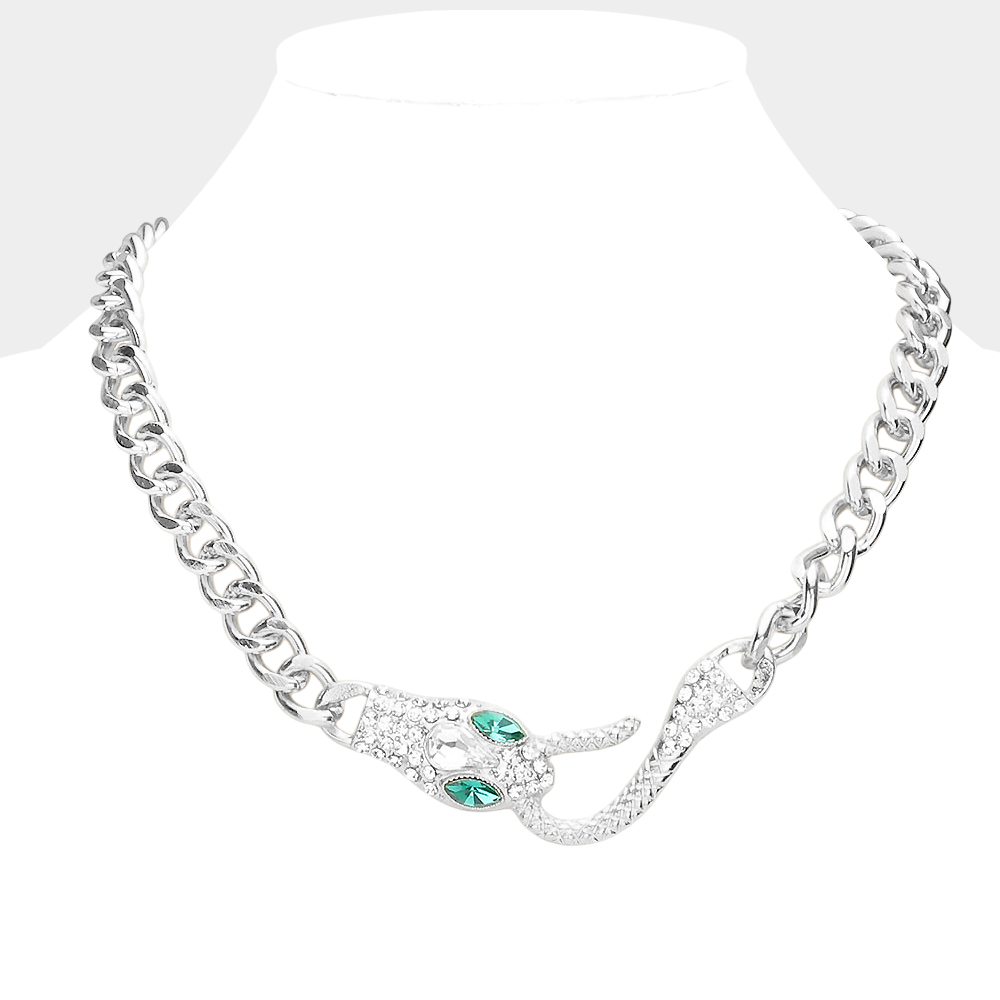 Stone Embellished Snake Pendant Necklace