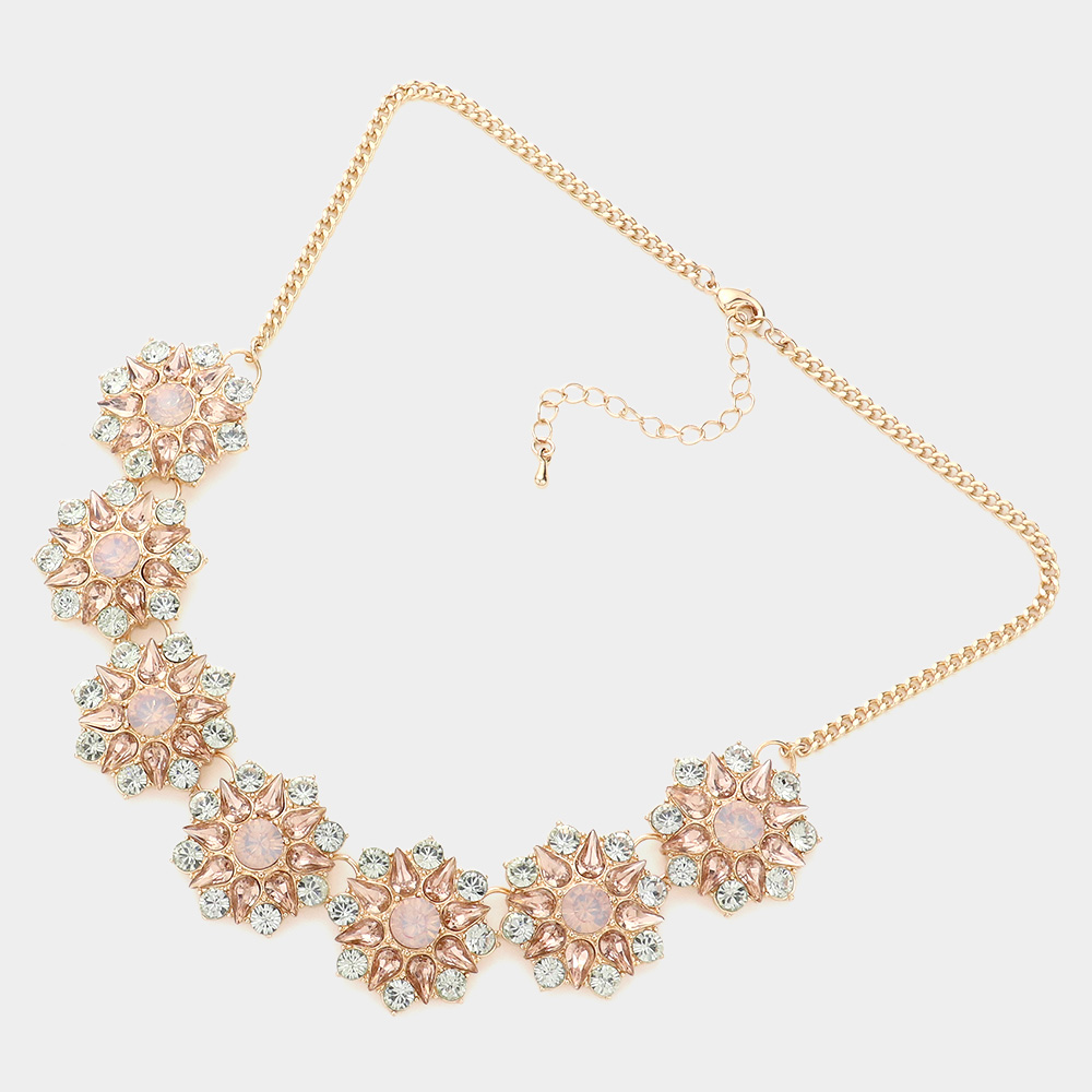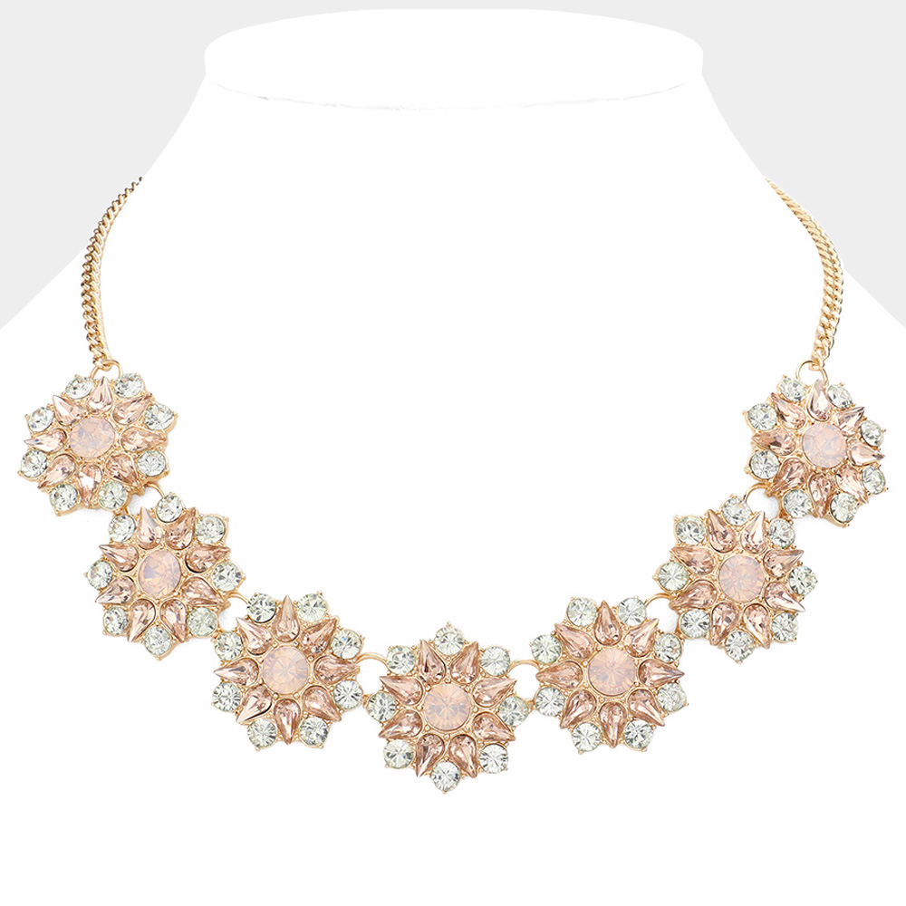 Flower Teardrop Stone Cluster Dangle Evening Earrings