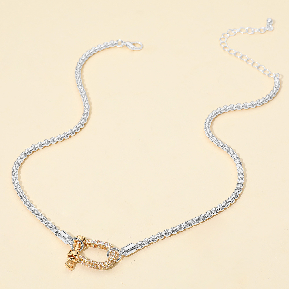 Details • Necklace Size : 16" + 3.5" L • Decor Size : 0.75" L • Elevate your style with this box chain necklace featuring a shimmering pave link carabiner pendant. Designed with a secure clasp and a bold, refined look, this statement piece adds elegance and sophistication to both everyday wear and special occasions. • Lead and Nickel Compliant