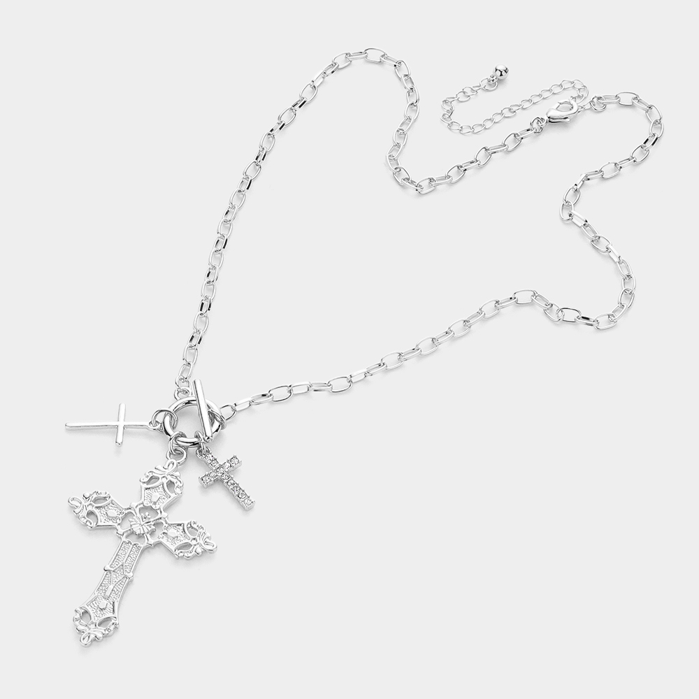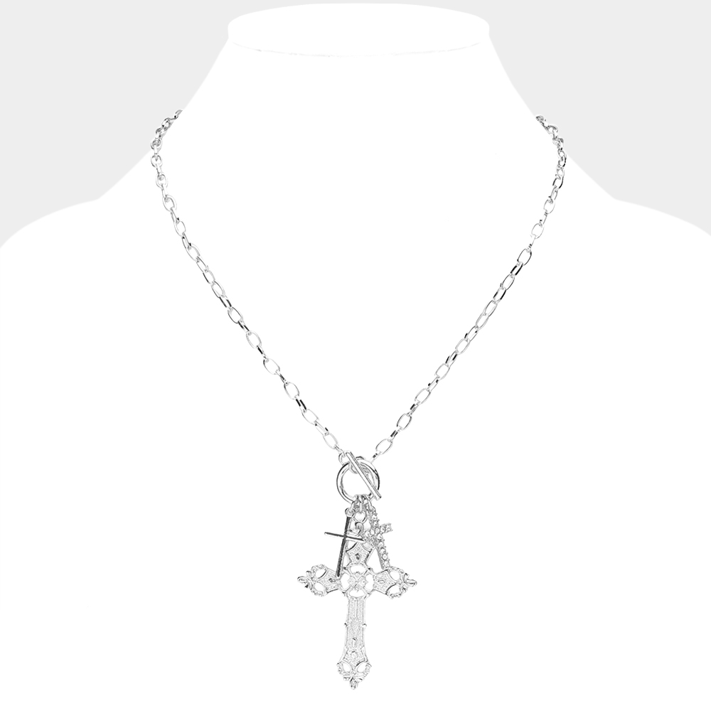 12PCS - Rhinestone Embellished Cross Charm Keychains