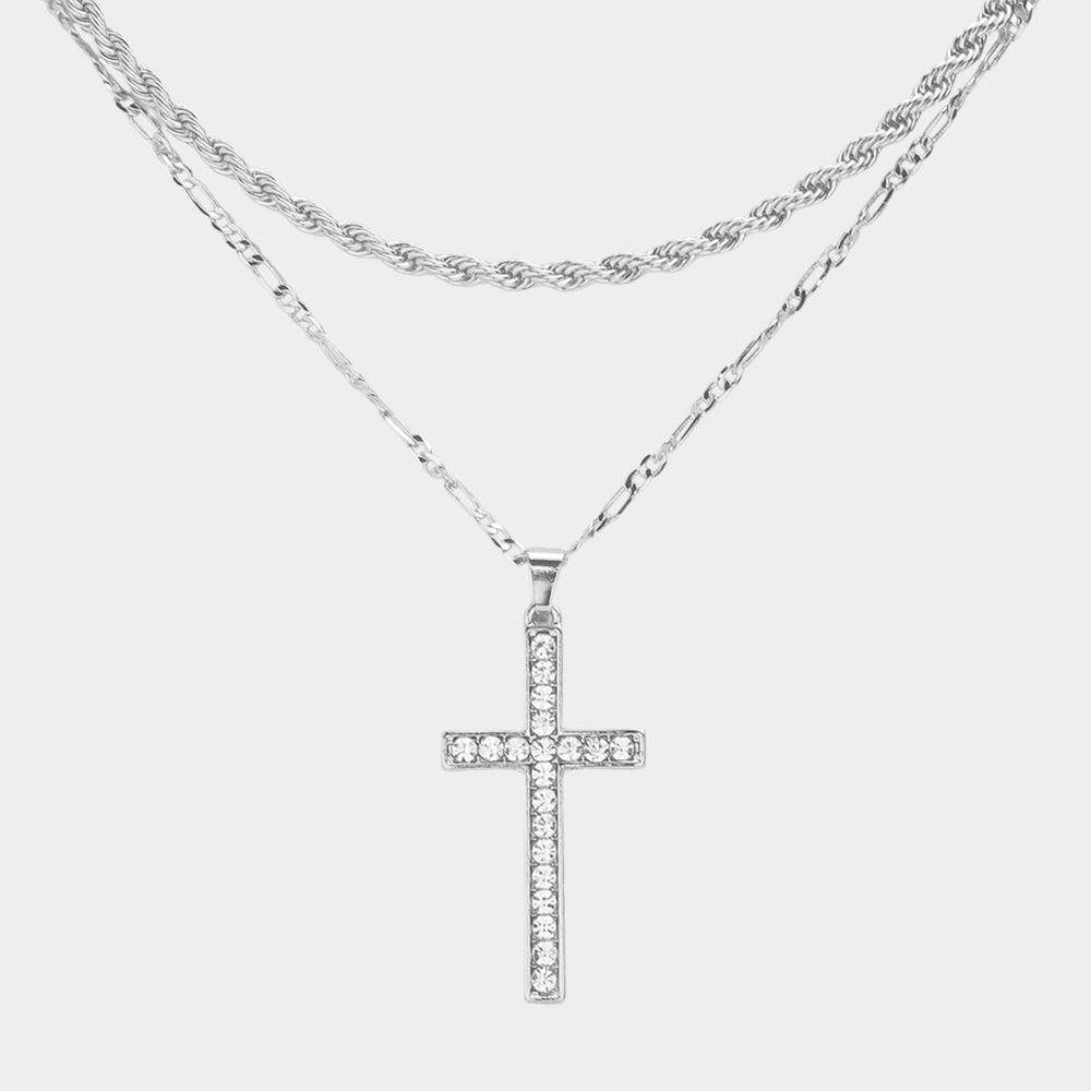 Triple Tiered Link Sparkle Cross Drop Earrings
