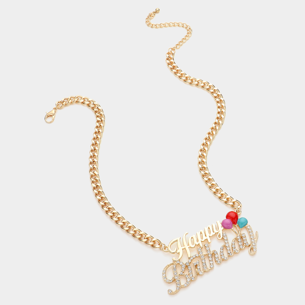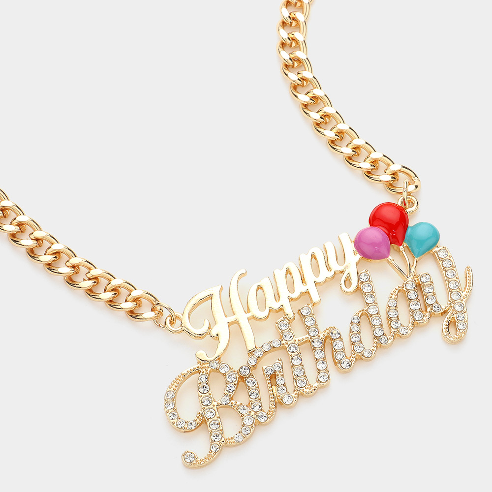 Stone Paved Enamel Balloon Pointed HAPPY BIRTHDAY Plate Chain Necklace