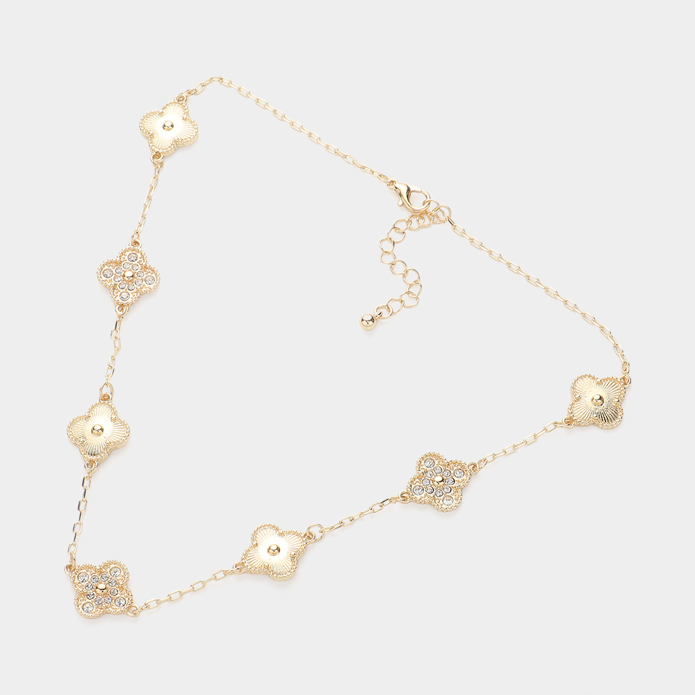 White Gold Dipped CZ Quatrefoil Charm Bracelet
