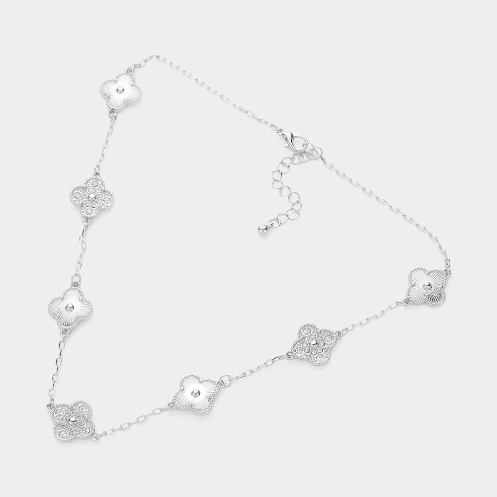 Heart Bow Flower Charm Quatrefoil Pearl Station Bag Charm