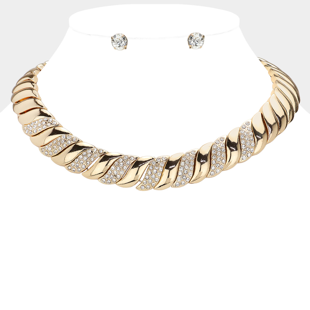3PCS - Rhinestone Embellished Chevron Link Necklace Jewelry Set