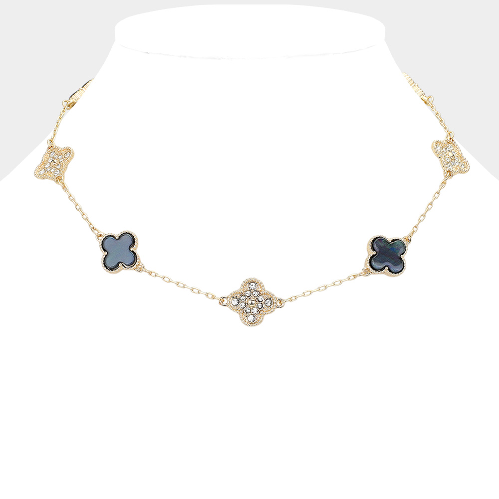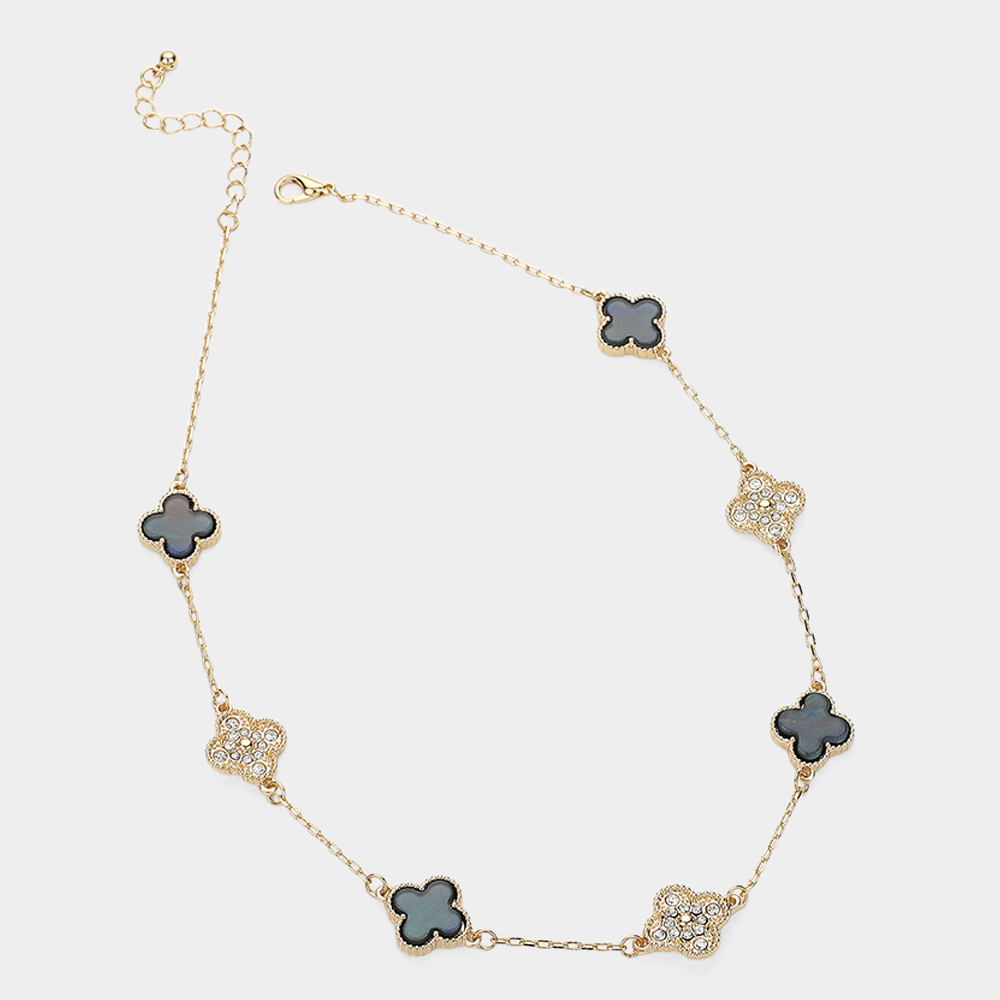 Stone Paved Natural Stone Quatrefoil Station Necklace