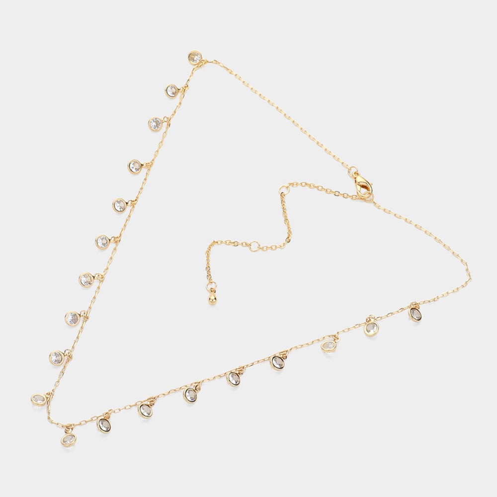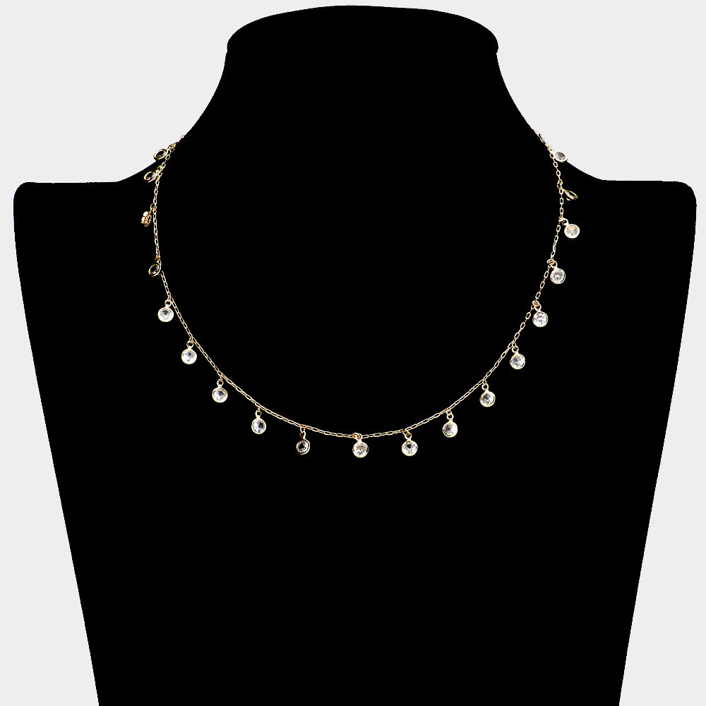 Marquise CZ Stone Embellished Rhinestone Paved Bar Collar Necklace